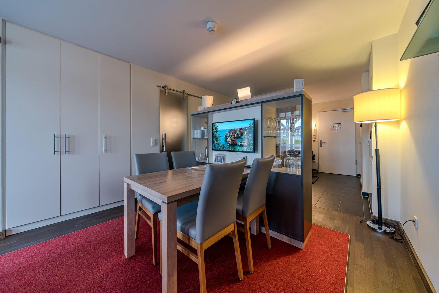 Das moderne Nichtraucher-Apartment verfügt über kostenfreies WLAN und eine voll ausgestattete offene Küche mit Geschirrspüler, Kaffeemaschine, Toaster, Wasserkocher, Tiefkühlfach und Backofen-Mikrowellen Kombination. In den beiden Schlafzimmern stehen euch jeweils ein Doppelbett (1,80 x 2,00 m), im Wohn-Essbereich ein Flatscreen-TV, eine Bluetooth-fähige HiFi-Anlage, Telefon und ein Elektrokamin zur Verfügung. Gesellschaftsspiele und Bücher sind vorhanden. Eines der Schlafzimmer verfügt über einen Flatscreen-TV. Ein Kinderbett kann gegen Entgelt aufgestellt werden und auf Wunsch könnt ihr einen Hochstuhl hinzubuchen.