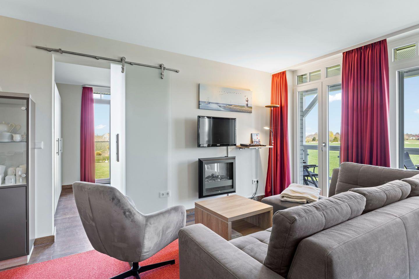 Das hochwertige Badezimmer ist eine richtige Wohlfühloase und lässt keine Wünsche offen - ausgestattet mit einem Doppelwaschtisch, begehbarer Dusche, WC und Bidet, Handtuchwärmer, Föhn und Kosmetikspiegel sowie der großzügigen eigenen Sauna lässt sich hier wunderbar entspannen. Das Apartment verfügt über einen großen, sonnigen und überdachten Balkon mit Strandkorb in Luxusausführung sowie Gartenmöbeln und einem wundervollen Blick ins malerische Wremer Umland. Der Balkon ist sowohl vom Wohn- als auch vom Schlafzimmer begehbar.