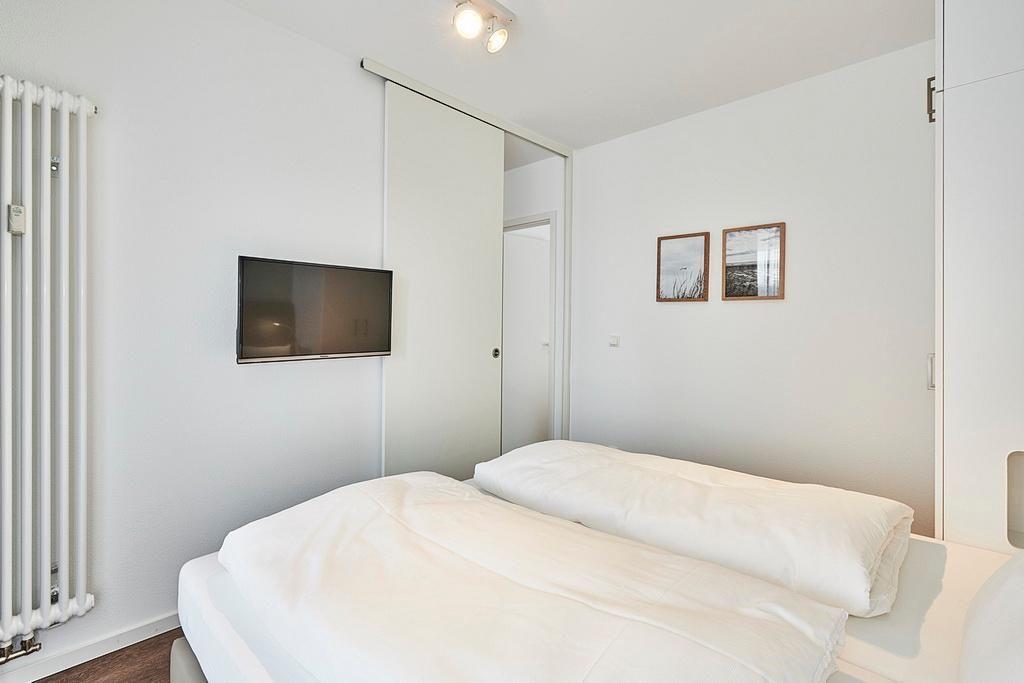 Die 57 m² große 3-Zimmer Ferienwohnung ist für bis zu 5 Personen geeignet. Besonders hervorzuheben ist die großzügige und überdachte Terrasse mit eigener Grünfläche in sonniger West-Lage. Hier lässt sich bis zum Abend das wohltuende Meeresklima und die Sonne genießen.