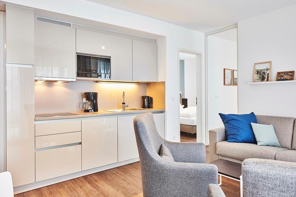 Das geschmackvoll eingerichtete Nichtraucher-Apartment verfügt über kostenfreies WLAN. Der Wohnbereich mit einer Schlafcouch bietet eine voll ausgestattete offene Küchenzeile mit Geschirrspüler, Gefrierfach, Kaffeemaschine, Toaster, Wasserkocher und Mikrowelle mit Backfunktion sowie einen großen Flatscreen-TV und ein Radio. Das Apartment verfügt über einen Esstisch für 5 Personen und einen behaglichen Sitzbereich. Zwei separate Schlafzimmer mit jeweils einem Doppelbett stehen euch zur Verfügung. Eines davon verfügt zudem über einen eigenen Flatscreen-TV. Im stilvollen Badezimmer befinden sich eine große begehbare Dusche sowie ein Waschtisch mit Föhn und Kosmetikspiegel. Nach einem erlebnisreichen Urlaubstag entspannt ihr auf der überdachten und mit Gartenmöbeln für 5 Personen ausgestatteten Terrasse. Die Terrasse ist vom Wohnbereich und vom Hauptschlafzimmer aus zugänglich.