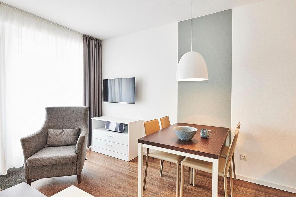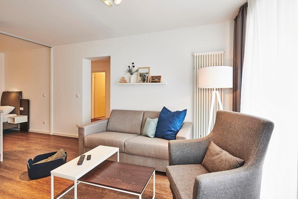 Das geschmackvoll eingerichtete Nichtraucher-Apartment verfügt über kostenfreies WLAN. Der Wohnbereich mit einer Schlafcouch bietet eine voll ausgestattete offene Küchenzeile mit Geschirrspüler, Gefrierfach, Kaffeemaschine, Toaster, Wasserkocher und Mikrowelle mit Backfunktion sowie einen großen Flatscreen-TV und ein Radio. Das Apartment verfügt über einen Esstisch für 5 Personen und einen behaglichen Sitzbereich. Zwei separate Schlafzimmer stehen euch zur Verfügung. Eines davon verfügt über ein Doppelbett und einen eigenen Flatscreen-TV, ein weiteres Alkoven Schlafzimmer über zwei Einzelbetten. Ein Kinderbett kann gegen Entgelt aufgestellt werden. Im stilvollen Badezimmer befinden sich eine große begehbare Dusche sowie ein Waschtisch mit Föhn und Kosmetikspiegel. Nach einem erlebnisreichen Urlaubstag lässt es sich auf den beiden überdachten und mit Gartenmöbeln ausgestatteten Balkonen wunderbar entspannen. Die Balkone sind vom Wohnbereich bzw. vom Hauptschlafzimmer aus zugänglich.