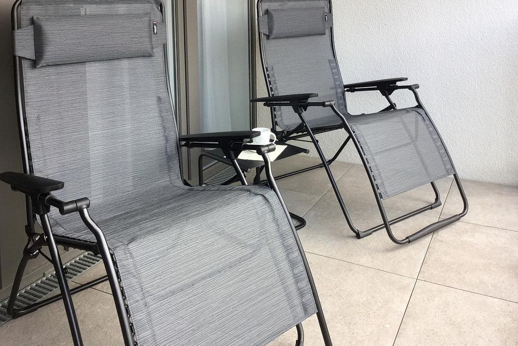 Die 61 m² große 3-Zimmer Ferienwohnung ist für bis zu 5 Personen geeignet. Besonders hervorzuheben sind die beiden überdachten Balkone mit Relaxliegestühlen und Beistelltisch in sonniger West-Lage. Hier lässt es sich den ganzen Tag über herrlich entspannen.