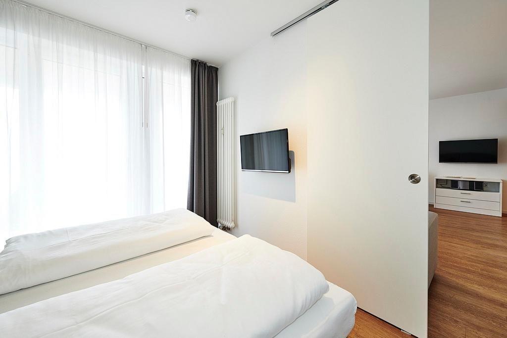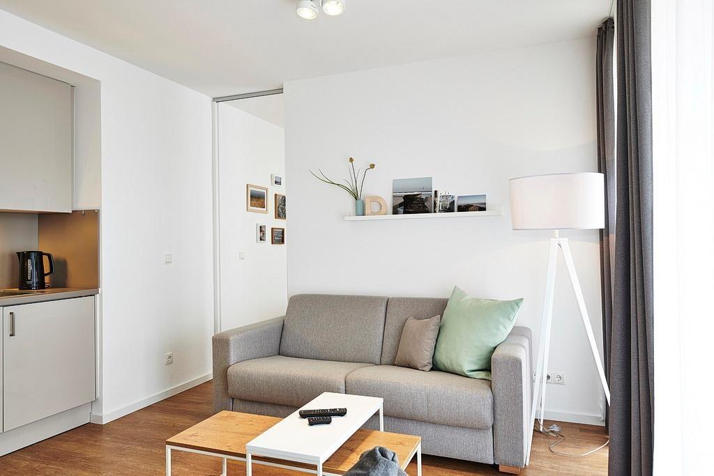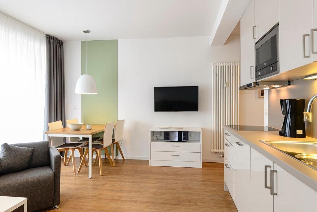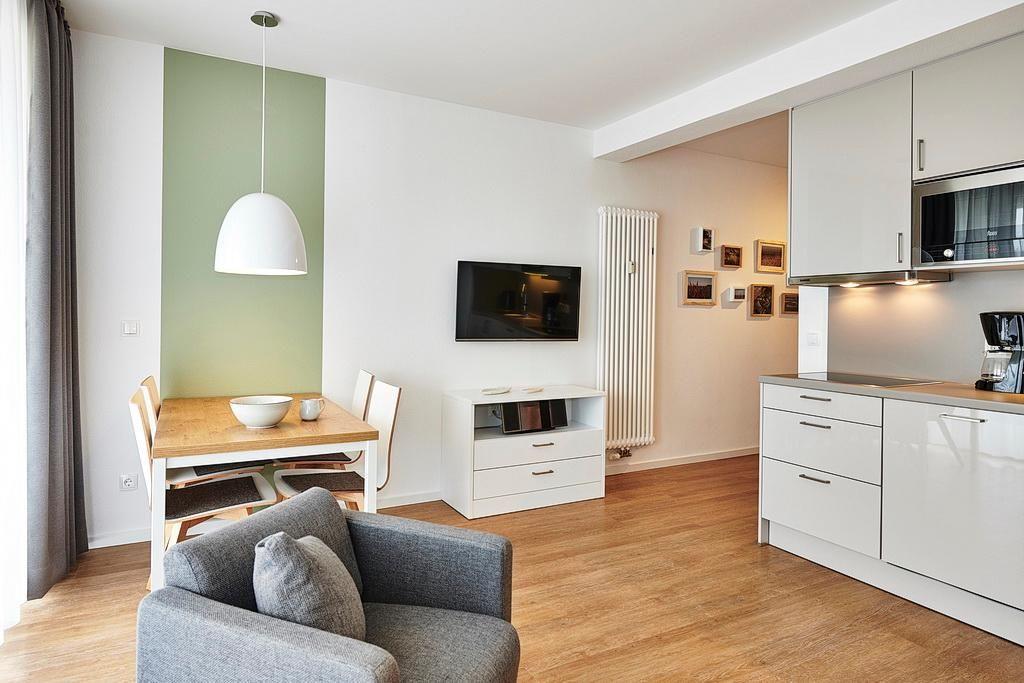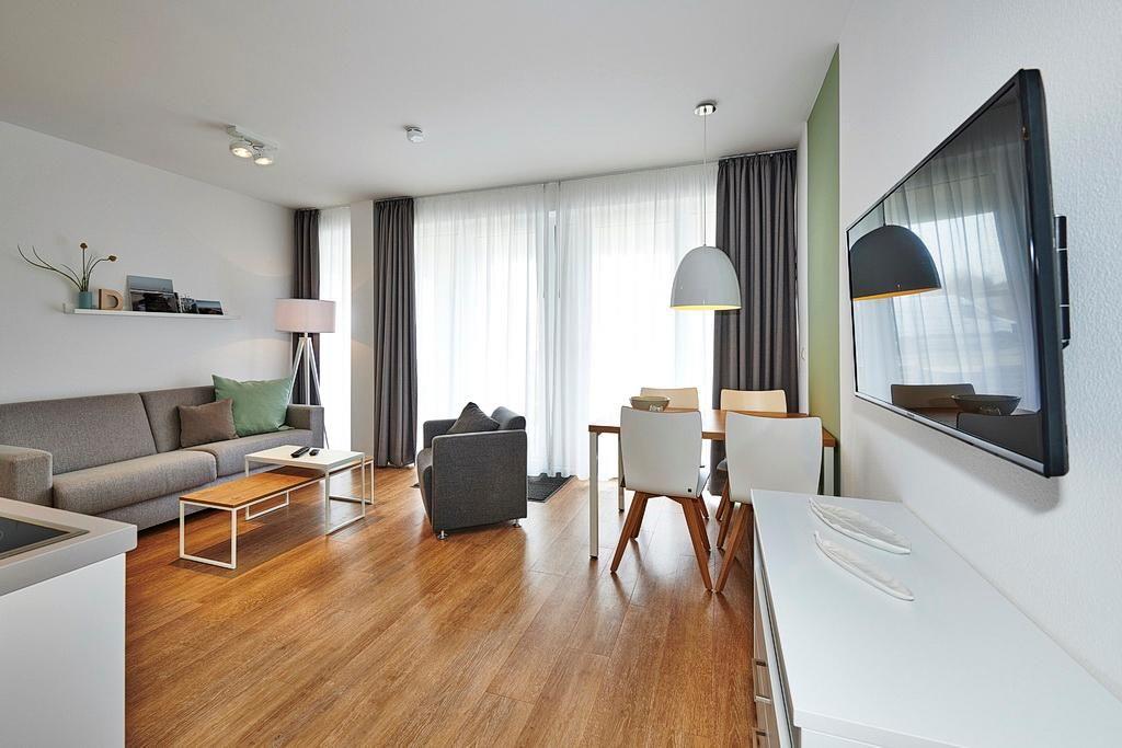 Das geschmackvoll eingerichtete Nichtraucher-Apartment verfügt über kostenfreies WLAN. Der Wohnbereich mit Schlafcouch bietet eine voll ausgestattete offene Küchenzeile mit Geschirrspüler, Gefrierfach, Kaffeemaschine, Toaster, Wasserkocher und Mikrowelle mit Backfunktion sowie einen großen Flatscreen-TV und ein Radio. Das Apartment verfügt über einen Esstisch für 5 Personen und einen behaglichen Sitzbereich. Im separaten Schlafzimmer steht euch ein Doppelbett mit eigenem Flatscreen-TV zur Verfügung. Im stilvollen Badezimmer befinden sich eine große begehbare Dusche sowie ein Waschtisch mit Föhn und Kosmetikspiegel. Nach einem erlebnisreichen Urlaubstag entspannt ihr auf der überdachten und mit Gartenmöbeln für 5 Personen ausgestatteten Terrasse.
