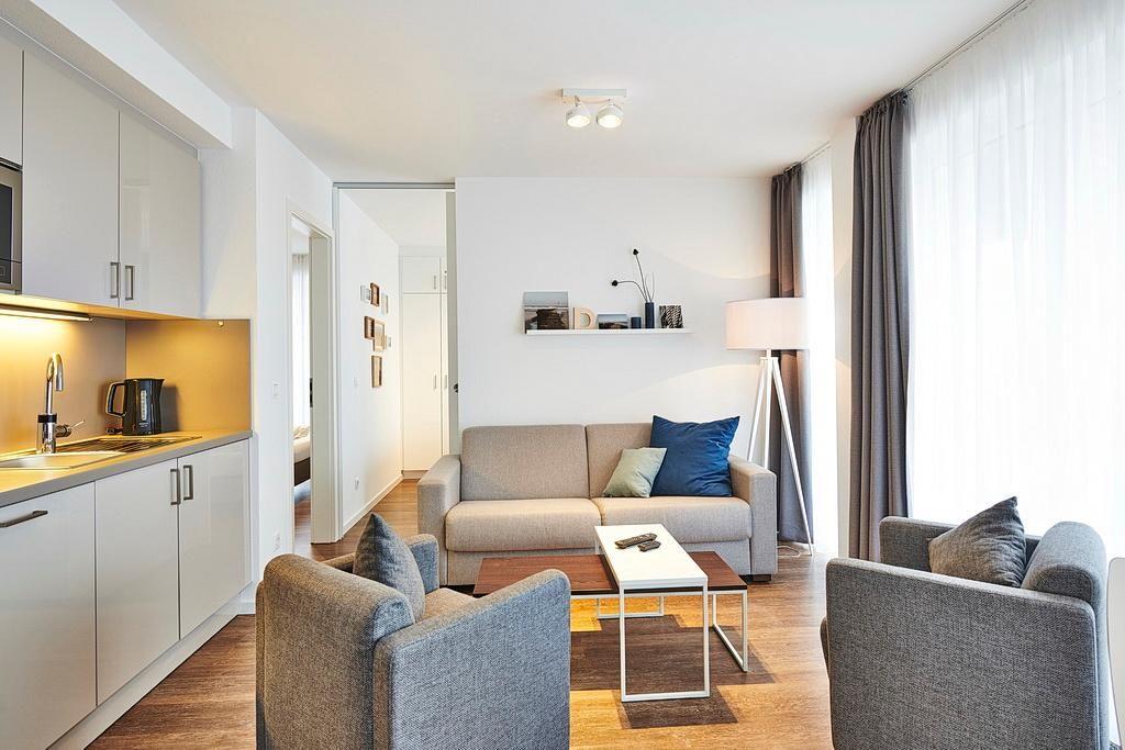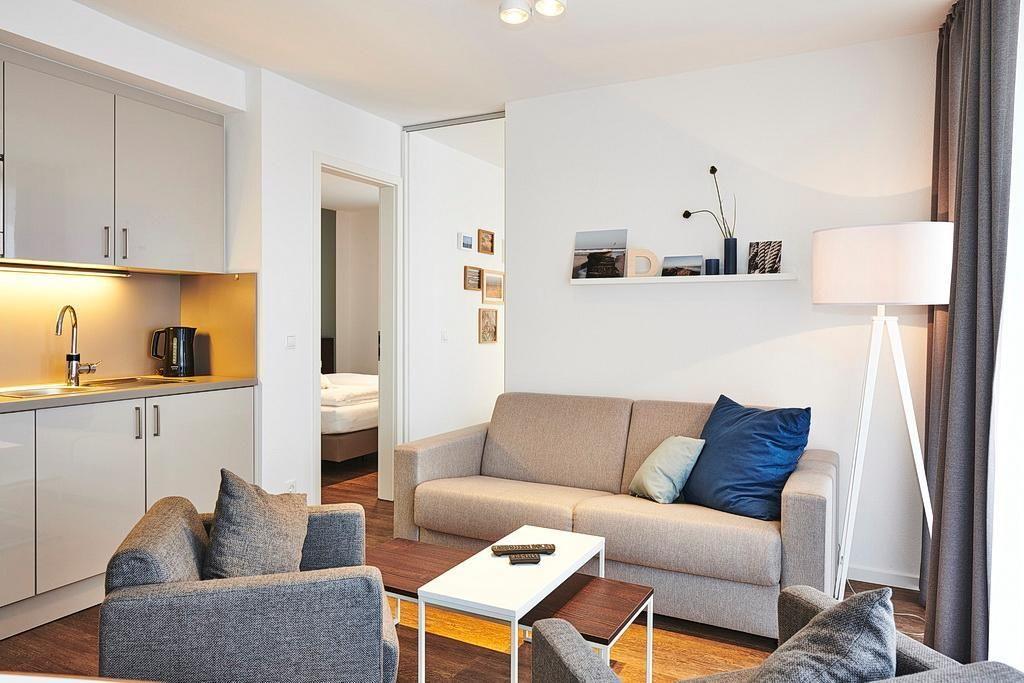Das geschmackvoll eingerichtete Nichtraucher-Apartment verfügt über kostenfreies WLAN. Der Wohnbereich bietet eine voll ausgestattete offene Küchenzeile mit Geschirrspüler, Gefrierfach, Kaffeemaschine, Toaster, Wasserkocher und Mikrowelle mit Backfunktion sowie einen großen Flatscreen-TV und ein Radio. Das Apartment verfügt über einen Esstisch für 5 Personen und einen behaglichen Sitzbereich. Zwei separate Schlafzimmer mit jeweils einem Doppelbett stehen euch zur Verfügung. Eines davon verfügt zudem über einen eigenen Flatscreen-TV. Im stilvollen Badezimmer befinden sich eine große begehbare Dusche sowie ein Waschtisch mit Föhn und Kosmetikspiegel. Nach einem erlebnisreichen Urlaubstag entspannt ihr auf dem überdachten und mit Gartenmöbeln für 5 Personen ausgestatteten Balkon. Der Balkon ist vom Wohnbereich und vom Hauptschlafzimmer aus zugänglich.