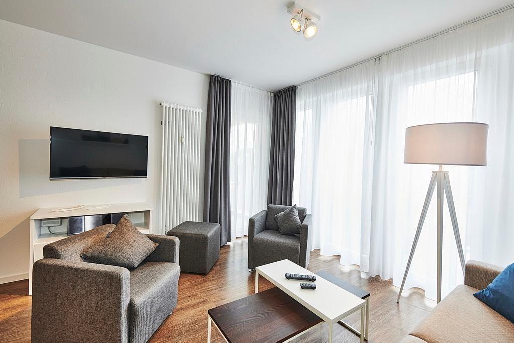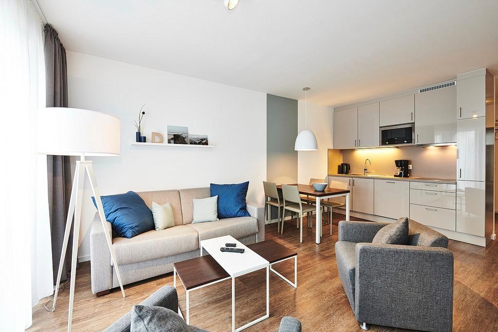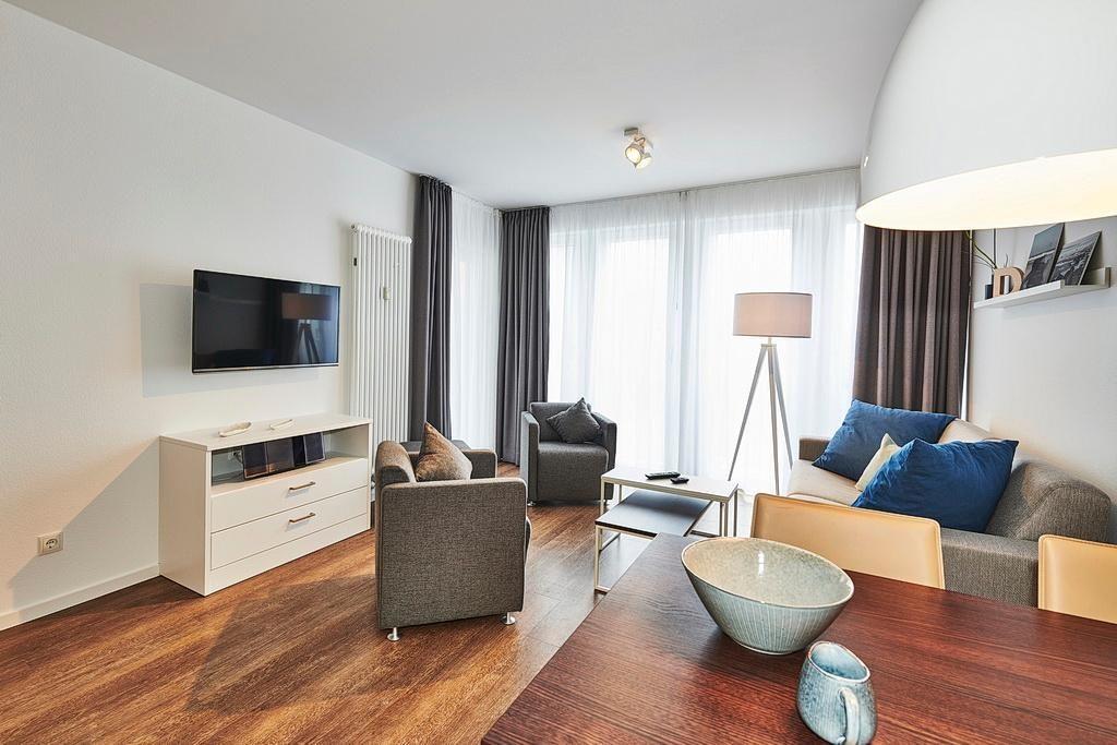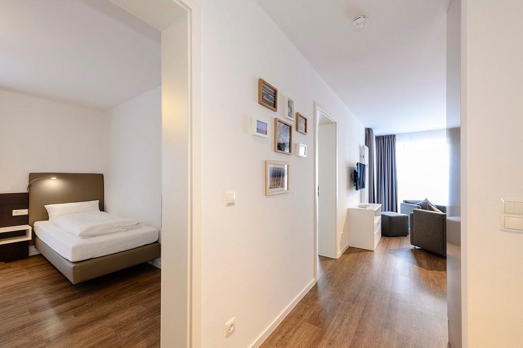 Das geschmackvoll eingerichtete Nichtraucher-Apartment verfügt über kostenfreies WLAN. Der Wohnbereich mit einer Schlafcouch bietet eine voll ausgestattete offene Küchenzeile mit Geschirrspüler, Gefrierfach, Kaffeemaschine, Toaster, Wasserkocher und Mikrowelle mit Backfunktion sowie einen großen Flatscreen-TV mit CD-Player und ein Radio. Das Apartment verfügt über einen Esstisch für 5 Personen und einen behaglichen Sitzbereich. Zwei separate Schlafzimmer stehen euch zur Verfügung. Eines davon verfügt über ein Doppelbett und einen eigenen Flatscreen-TV, ein weiteres über zwei Einzelbetten. Ein Kinderbett kann gegen Entgelt aufgestellt werden. Im stilvollen Badezimmer befinden sich eine große begehbare Dusche sowie ein Waschtisch mit Föhn und Kosmetikspiegel. Nach einem erlebnisreichen Urlaubstag entspannt ihr auf dem überdachten und mit Gartenmöbeln für 4 Personen ausgestatteten Balkon. Der Balkon ist vom Wohnbereich und vom Hauptschlafzimmer aus zugänglich.