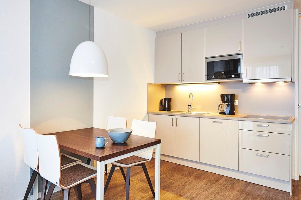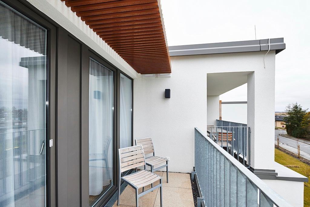 Das moderne und geschmackvoll eingerichtete Nichtraucher-Apartment verfügt über kostenfreies WLAN. Der Wohnbereich mit Schlafcouch bietet eine voll ausgestattete offene Küchenzeile mit Geschirrspüler, Gefrierfach, Kaffeemaschine, Toaster, Wasserkocher und Mikrowelle mit Backfunktion sowie einen großen Flatscreen-TV und ein Radio. Das Apartment verfügt über einen Esstisch für 5 Personen und einen behaglichen Sitzbereich. Zwei separate Schlafzimmer mit jeweils einem Doppelbett und zwei Einzelbetten stehen euch zur Verfügung. Eines davon verfügt zudem über einen eigenen Flatscreen-TV, das andere ist ein Alkoven-Schlafzimmer. Ein Kinderbett kann gegen Entgelt aufgestellt werden. Im stilvollen Badezimmer befinden sich eine große begehbare Dusche sowie ein Waschtisch mit Föhn und Kosmetikspiegel. Nach einem erlebnisreichen Urlaubstag lässt es sich auf den beiden überdachten und mit Gartenmöbeln für 5 Personen ausgestatteten Balkonen wunderbar entspannen. Die Balkone sind vom Wohnbereich bzw. vom Hauptschlafzimmer aus zugänglich.