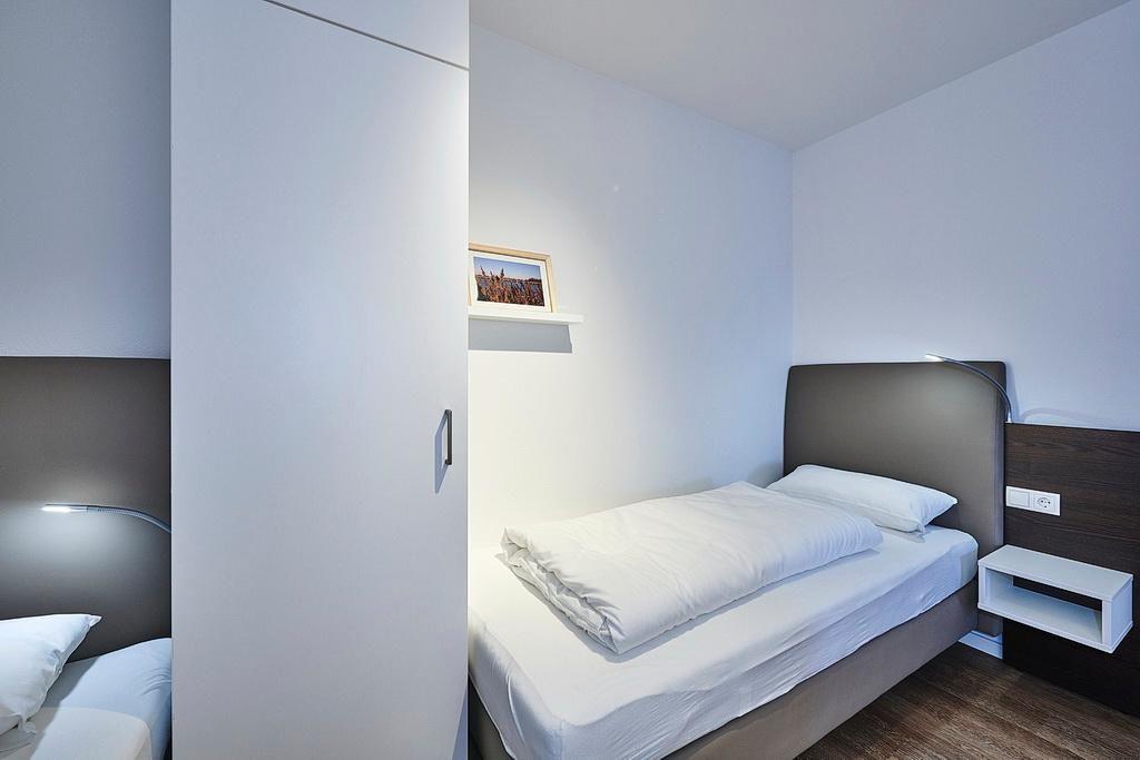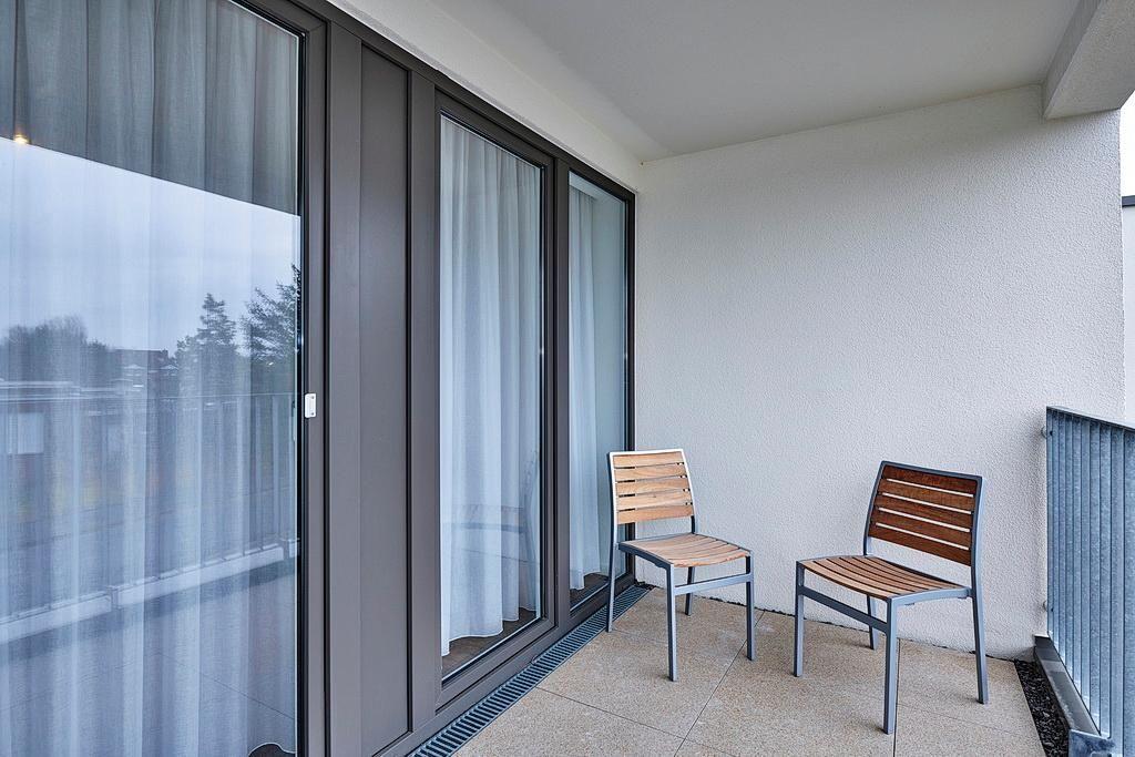 Das moderne und geschmackvoll eingerichtete Nichtraucher-Apartment verfügt über kostenfreies WLAN. Der Wohnbereich mit Schlafcouch bietet eine voll ausgestattete offene Küchenzeile mit Geschirrspüler, Gefrierfach, Kaffeemaschine, Toaster, Wasserkocher und Mikrowelle mit Backfunktion sowie einen großen Flatscreen-TV und ein Radio. Das Apartment verfügt über einen Esstisch für 5 Personen und einen behaglichen Sitzbereich. Zwei separate Schlafzimmer mit einem Doppelbett bzw. zwei Einzelbetten (Alkoven) stehen euch zur Verfügung. Eines davon verfügt zudem über einen eigenen Flatscreen-TV. Ein Kinderbett kann gegen Entgelt aufgestellt werden. Im stilvollen Badezimmer befinden sich eine große begehbare Dusche sowie ein Waschtisch mit Föhn und Kosmetikspiegel. Nach einem erlebnisreichen Urlaubstag lässt es sich auf den beiden überdachten und mit Gartenmöbeln und Sonnenliege für 5 Personen ausgestatteten Balkonen wunderbar entspannen. Die Balkone sind vom Wohnbereich bzw. vom Hauptschlafzimmer aus zugänglich.