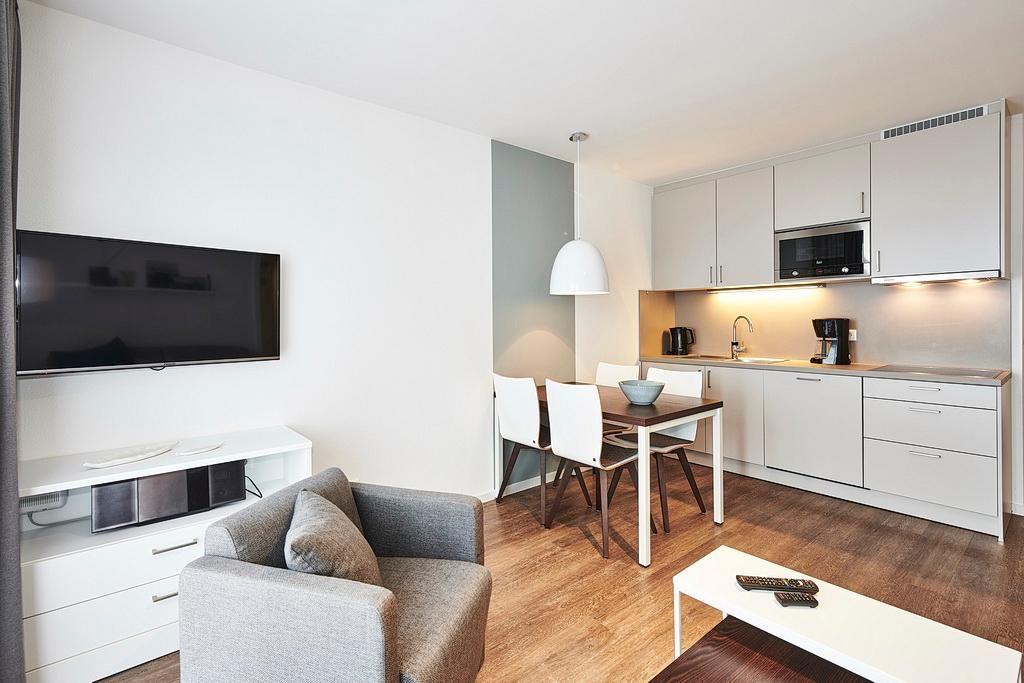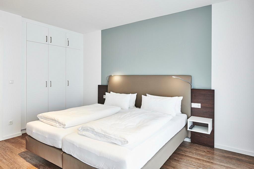Das geschmackvoll eingerichtete Nichtraucher-Apartment verfügt über kostenfreies WLAN. Der Wohnbereich mit Schlafcouch bietet eine voll ausgestattete offene Küchenzeile mit Geschirrspüler, Gefrierfach, Kaffeemaschine, Toaster, Wasserkocher und Mikrowelle mit Backfunktion sowie einen großen Flatscreen-TV und ein Radio. Das Apartment verfügt über einen Esstisch für 5 Personen und einen behaglichen Sitzbereich. Zwei separate Schlafzimmer mit einem Doppelbett bzw. zwei Einzelbetten stehen euch zur Verfügung. Bei dem Schlafzimmer mit zwei Einzelbetten handelt es sich um ein Alkoven-Schlafzimmer. Das Schlafzimmer mit Doppelbett verfügt über einen eigenen Flatscreen-TV. Ein Kinderbett kann gegen Entgelt aufgestellt werden. Im stilvollen Badezimmer befinden sich eine große begehbare Dusche sowie ein Waschtisch mit Föhn und Kosmetikspiegel. Nach einem erlebnisreichen Urlaubstag lässt es sich auf den beiden überdachten und mit Gartenmöbeln für 5 Personen ausgestatteten Balkonen wunderbar entspannen. Die Balkone sind vom Wohnbereich bzw. vom Hauptschlafzimmer aus zugänglich.