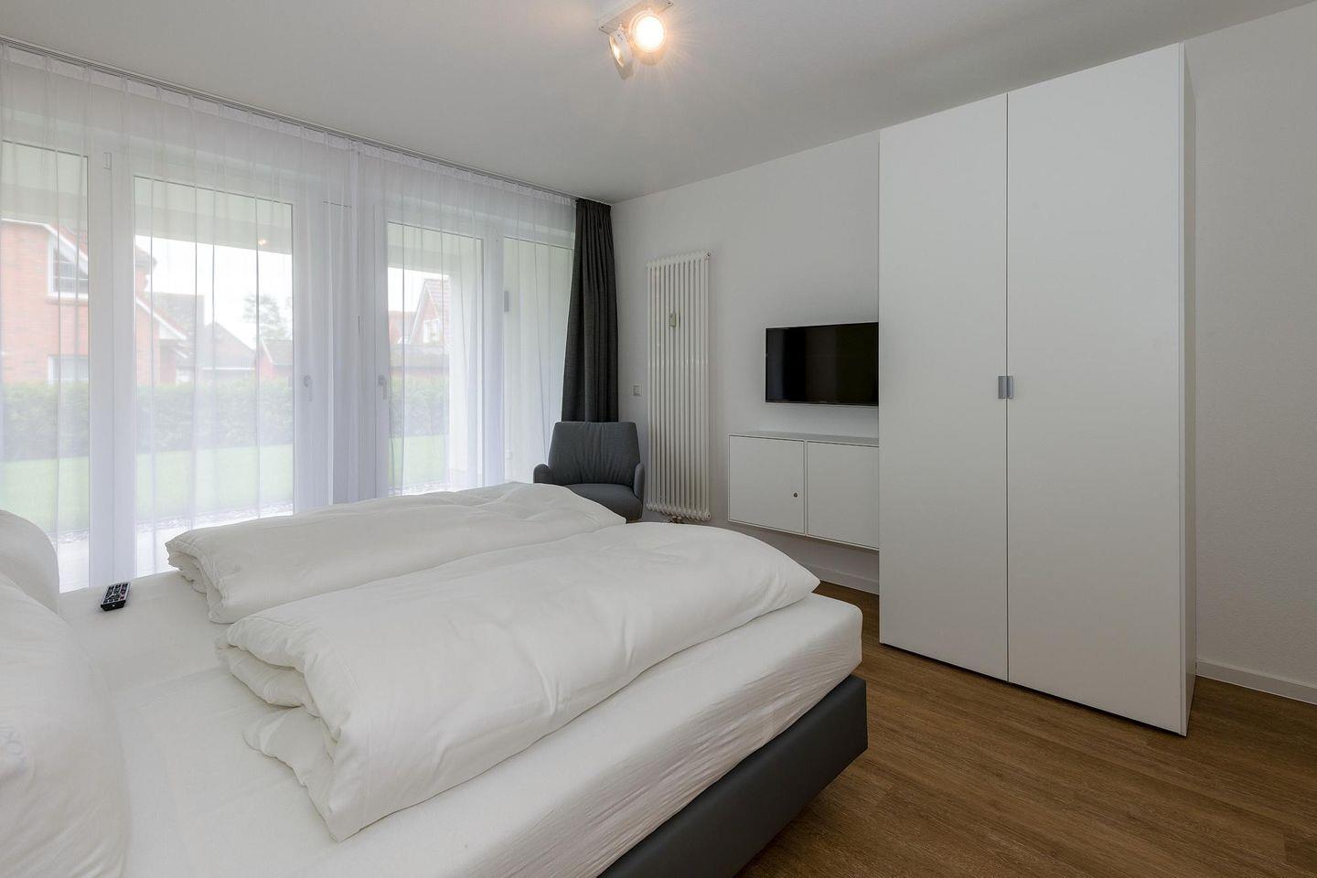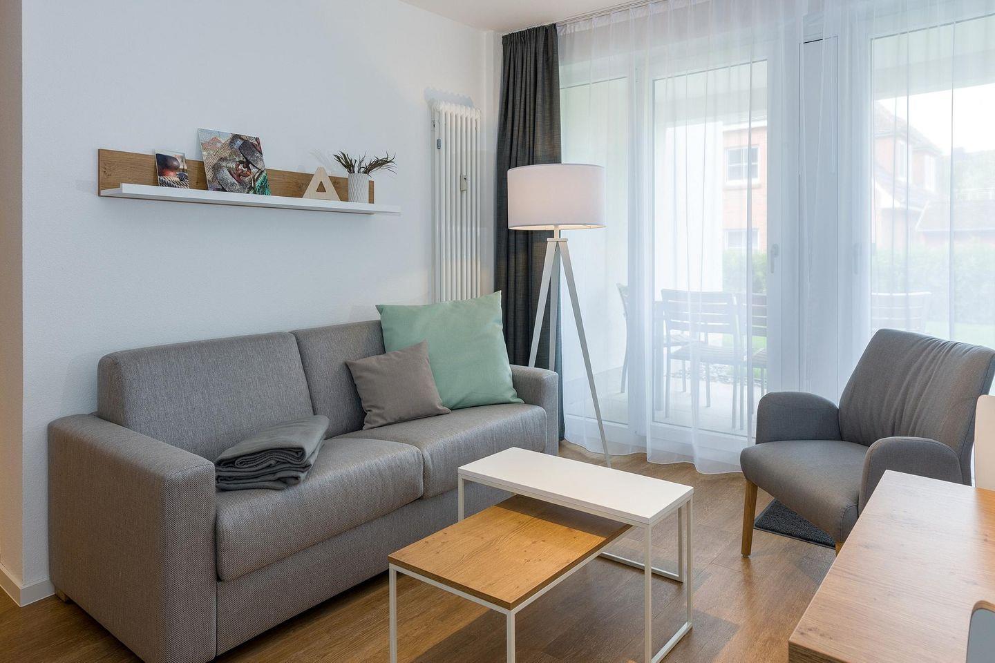 Die 62 m² große 3-Zimmer Ferienwohnung ist für bis zu 5 Personen geeignet. Besonders hervorzuheben sind die zwei großzügigen und überdachten Terrassen in sonniger Süd-West-Lage mit eigener Grünfläche. Hier lässt sich den ganzen Tag das wohltuende Meeresklima des Nordseeheilbades genießen.
