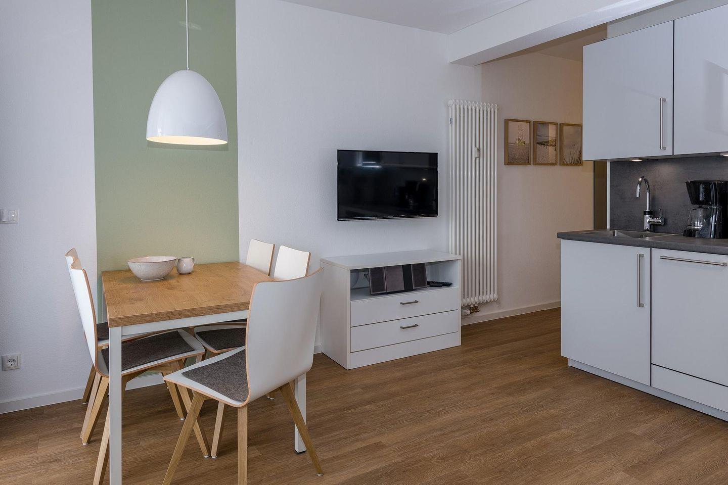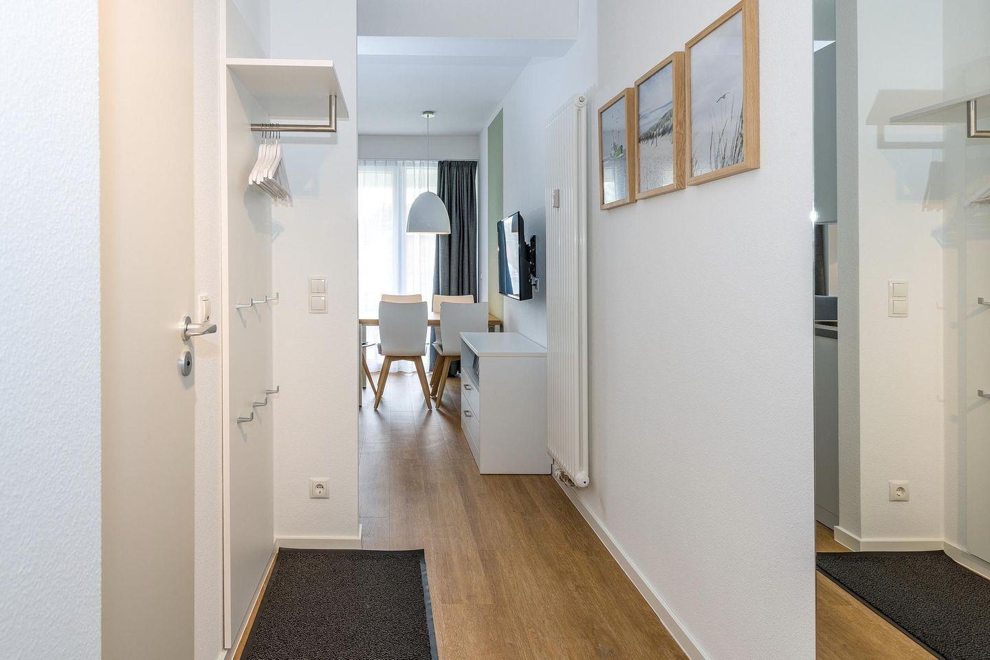 Die 58 m² große 3-Zimmer Ferienwohnung ist für bis zu 4 Personen geeignet. Besonders hervorzuheben ist der überdachte Balkon in Süd-West Lage. Hier lässt sich den ganzen Tag das wohltuende Meeresklima des Nordseeheilbades genießen.
