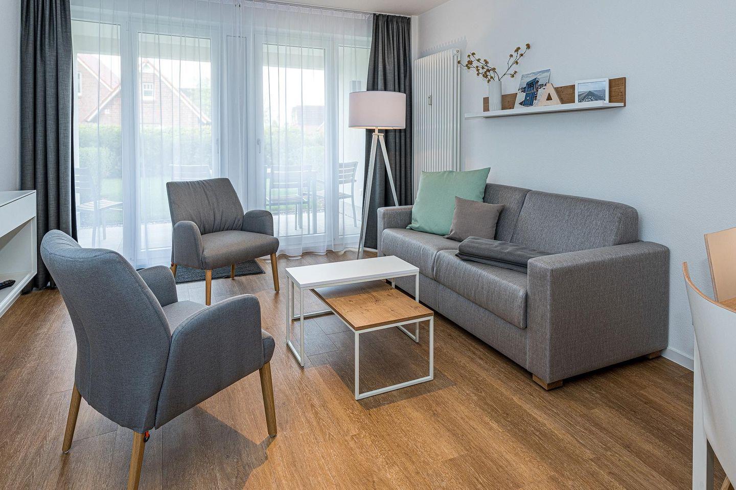Die 60 m² große 3-Zimmer Ferienwohnung ist für bis zu 5 Personen geeignet. Besonders hervorzuheben ist die Terrasse in sonniger Süd-West-Lage. Hier lässt sich den ganzen Tag das wohltuende Meeresklima des Nordseeheilbades genießen.