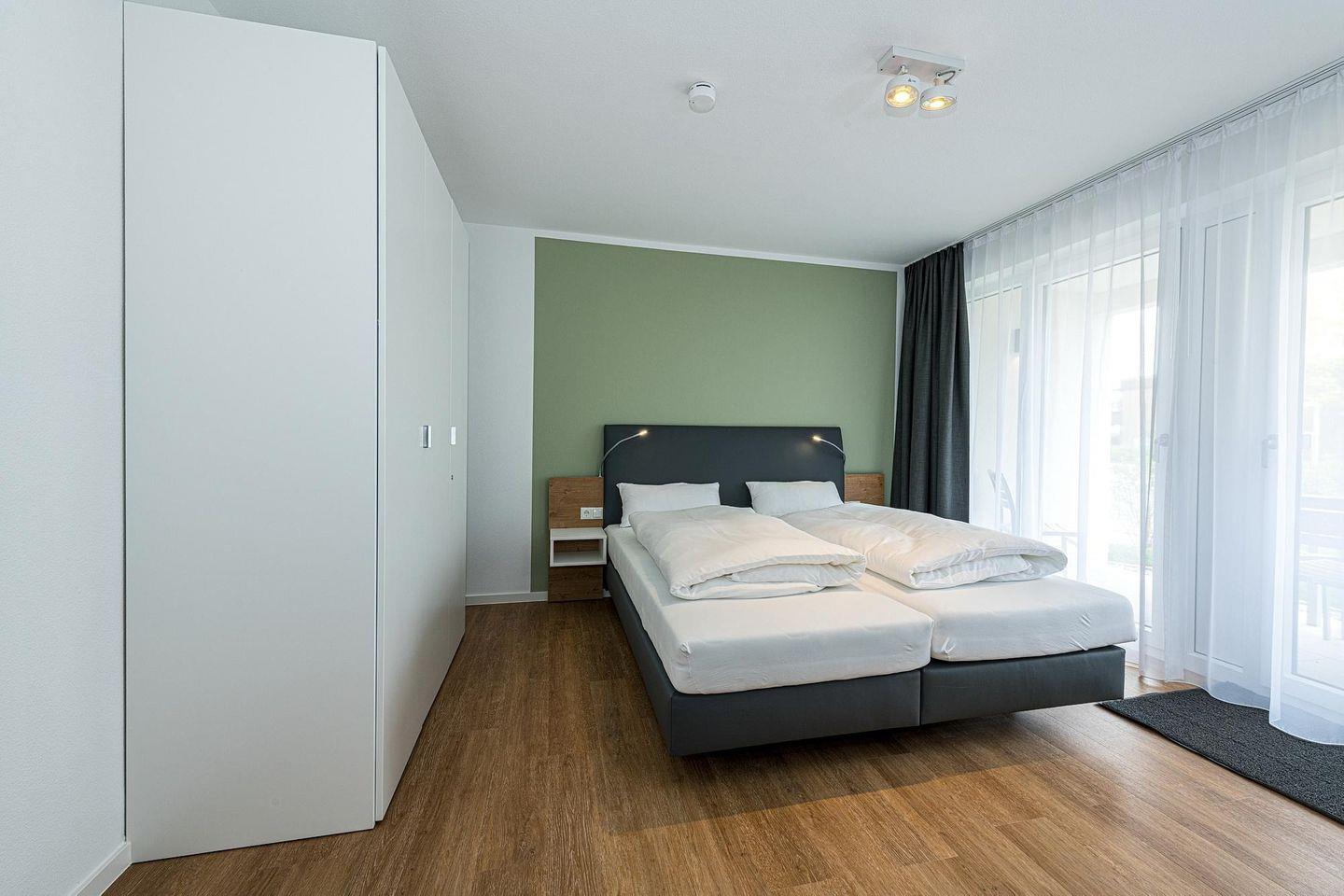Das geschmackvoll eingerichtete Nichtraucher-Apartment verfügt über kostenfreies WLAN. Der Wohnbereich mit einer Schlafcouch bietet eine voll ausgestattete offene Küchenzeile mit Geschirrspüler, Gefrierfach, Kaffeemaschine, Toaster, Wasserkocher, Backofen und Mikrowelle sowie einen großen Flatscreen-TV und ein Radio. Das Apartment verfügt über einen Esstisch für 5 Personen und einen behaglichen Sitzbereich. Zwei separate Schlafzimmer stehen euch zur Verfügung. Eines davon verfügt über ein Doppelbett und einen eigenen Flatscreen-TV, ein weiteres über zwei Einzelbetten. Ein Kinderbett kann gegen Entgelt aufgestellt werden. Im stilvollen Badezimmer befinden sich eine große begehbare Dusche sowie ein Waschtisch mit Föhn und Kosmetikspiegel. Nach einem erlebnisreichen Urlaubstag entspannt ihr auf der überdachten und mit Gartenmöbeln für 5 Personen ausgestatteten Terrasse.