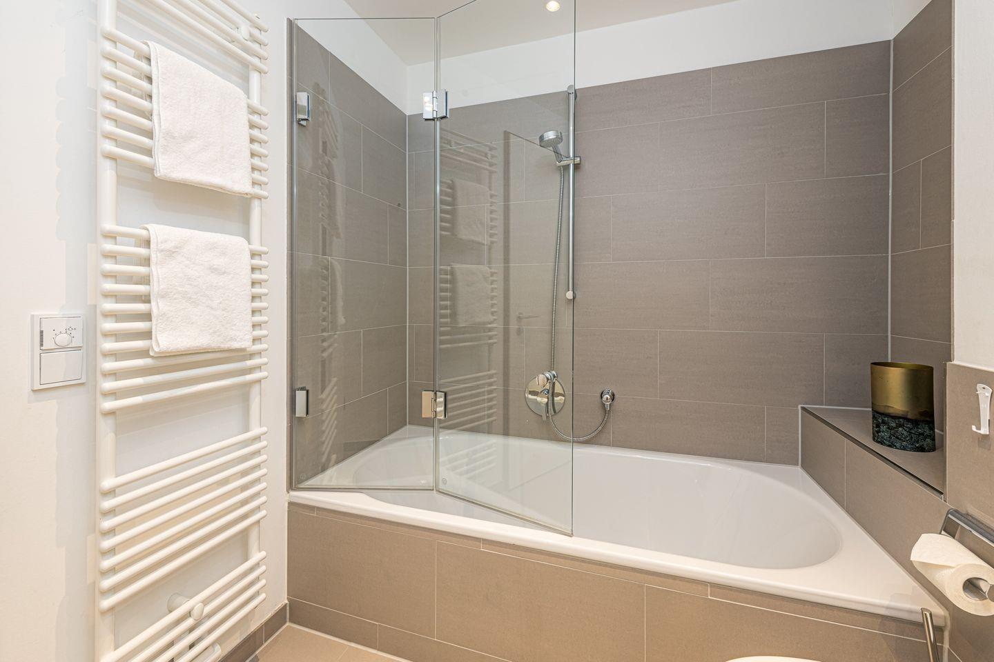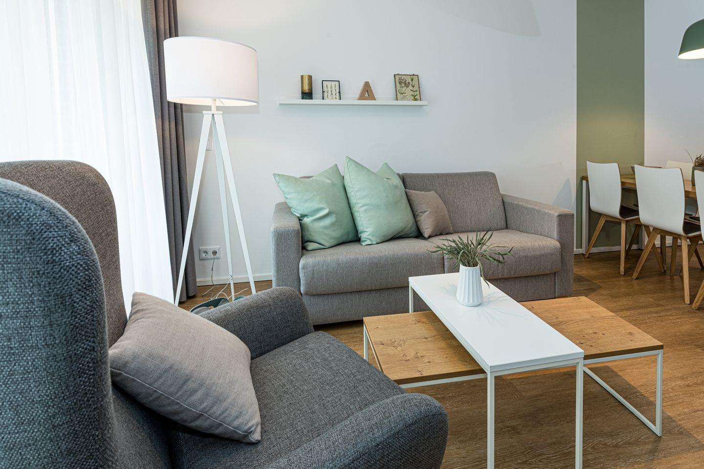 Das hochwertige Nichtraucher-Apartment verfügt über kostenfreies WLAN. Der Wohnbereich bietet eine voll ausgestattete offene Küche mit Geschirrspüler, Gefrierfach, Kaffeemaschine, Toaster, Wasserkocher und Mikrowelle mit Grillfunktion sowie einen großen Flatscreen-TV und Radio. Das Apartment verfügt über einen Esstisch für 7 Personen und einen behaglichen Sitzbereich. Drei separate Schlafzimmer stehen Ihnen zur Verfügung. Zwei Schlafzimmer verfügen über jeweils ein Doppelbett und Flatscreen-TV, ein Schlafzimmer besitzt einen eigenen Zugang zur Terrasse. Das dritte Alkoven-Schlafzimmer beinhaltet zwei Einzelbetten und einen Schlafsessel. Ein Kinderbett kann gegen Entgelt aufgestellt werden. In zwei stilvollen Badezimmern befinden sich eine große begehbare Dusche bzw. eine Badewanne sowie ein Waschtisch mit Föhn und Kosmetikspiegel. Auf der großen Terrasse könnt ihr in großer Runde gemütlich beisammensitzen und im Strandkorb entspannen.