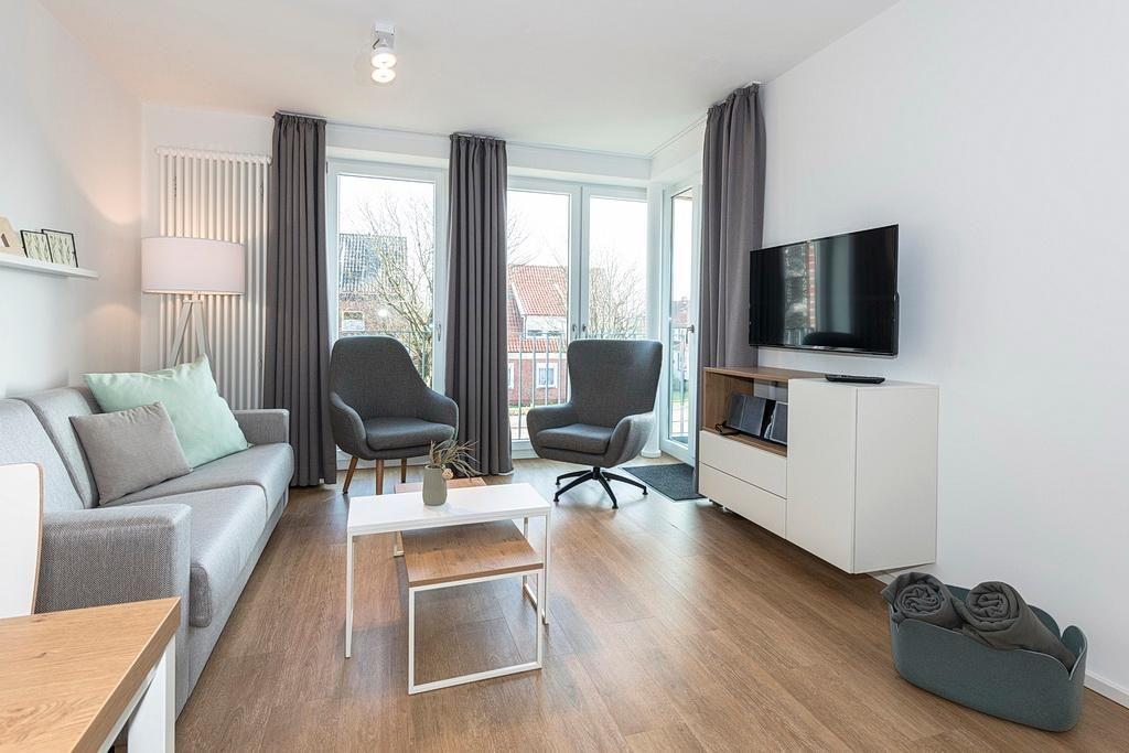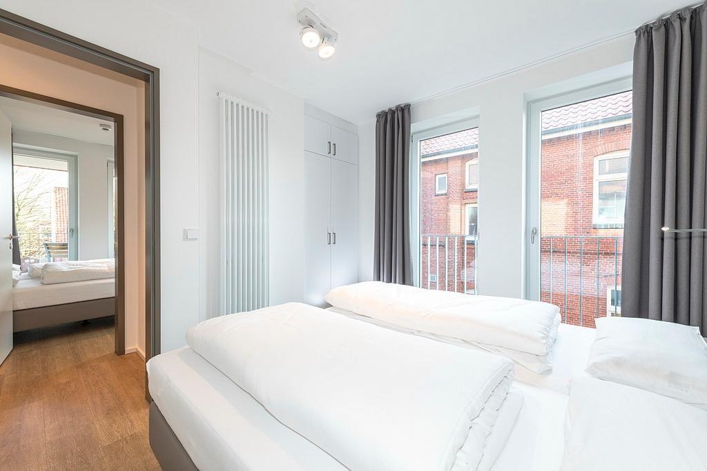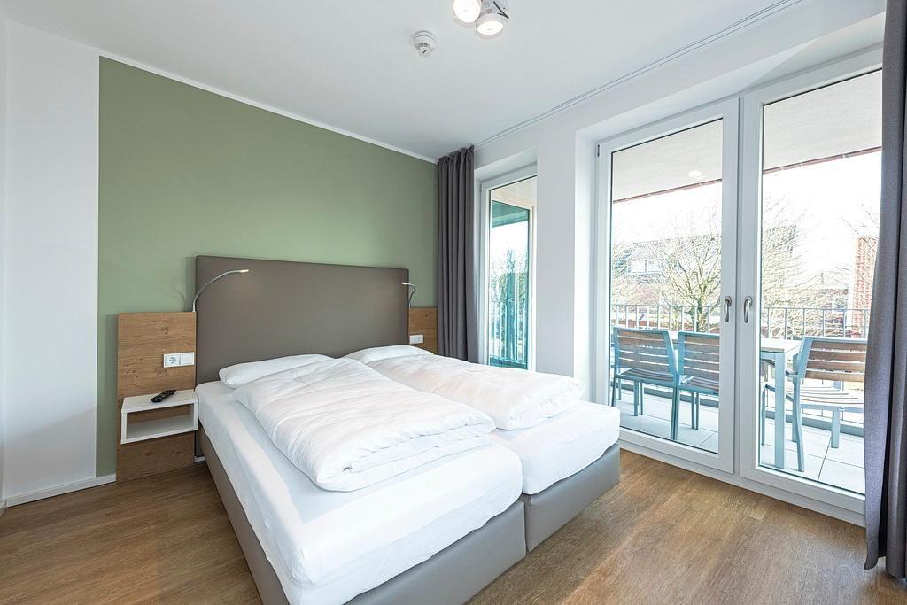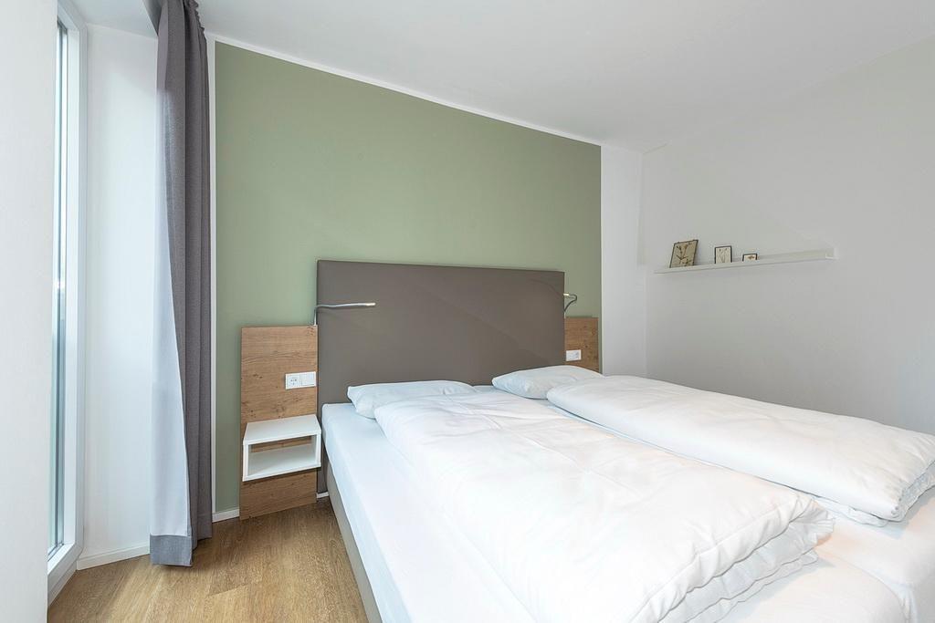 Das barrierearme Nichtraucher-Apartment verfügt über kostenfreies WLAN. Der Wohnbereich mit einer Schlafcouch bietet eine voll ausgestattete offene Küchenzeile mit Geschirrspüler, Gefrierfach, Kaffeemaschine, Toaster, Wasserkocher und Mikrowelle mit Grillfunktion sowie einen großen Flatscreen-TV und Radio. Das Apartment verfügt über einen Esstisch und einen behaglichen Sitzbereich. In den beiden separaten Schlafzimmern befindet sich jeweils ein Doppelbett. Eines der Schlafzimmer verfügt zudem über einen zweiten Flatscreen-TV. Ein Kinderbett kann gegen Entgelt aufgestellt werden. Im stilvollen Badezimmer befinden sich eine große begehbare Dusche, eine Badewanne sowie ein Waschtisch mit Föhn und Kosmetikspiegel. Nach einem erlebnisreichen Urlaubstag lässt es sich auf dem Balkon wunderbar entspannen.