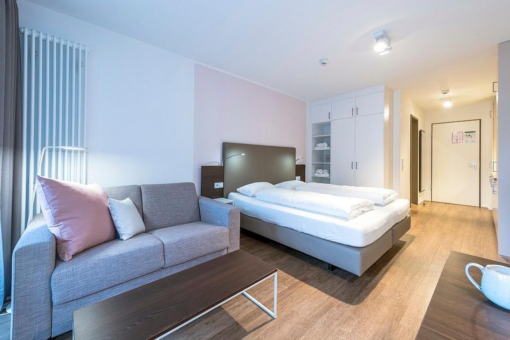 Der hauseigene Saunabereich im Erdgeschoss der Anlage verfügt über eine finnische Sauna, eine Softsauna, einen Ruheraum sowie Fußbecken und steht euch täglich während der Öffnungszeit zur freien Verfügung. Gegen eine kleine Leihgebühr sind Bademäntel und Saunatücher an der Rezeption erhältlich.