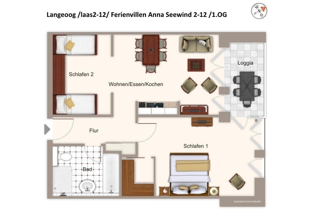 Die moderne und helle Ferienwohnung befindet sich in Ost-Lage im ersten Obergeschoss der Apartmentvilla Anna See, im Langeooger Ortszentrum, an der Barkhausenstraße gelegen. Der weitläufige Sandstrand und die Promenade sind nur 300 Meter entfernt. In der unmittelbaren Umgebung findet ihr zahlreiche Einkaufsmöglichkeiten, Restaurants und Cafés sowie Freizeitangebote wie z.B. das beliebte Meerwasser-Erlebnisbad, den Golfclub und die Kitesurfschule.
