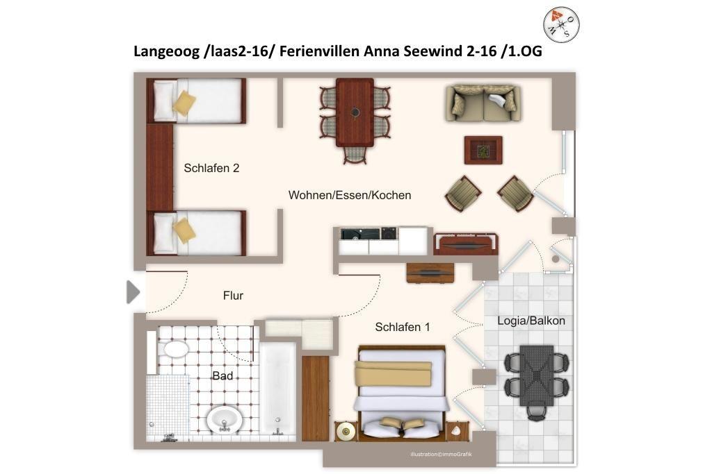 Die moderne und helle Ferienwohnung befindet sich in Süd-Lage im ersten Obergeschoss der Apartmentvilla Anna See, im Langeooger Ortszentrum, an der Barkhausenstraße gelegen. Der weitläufige Sandstrand und die Promenade sind nur 300 Meter entfernt. In der unmittelbaren Umgebung findet ihr zahlreiche Einkaufsmöglichkeiten, Restaurants und Cafés sowie Freizeitangebote wie z.B. das beliebte Meerwasser-Erlebnisbad, den Golfclub und die Kitesurfschule.