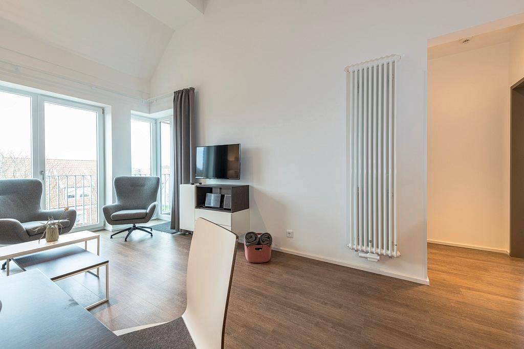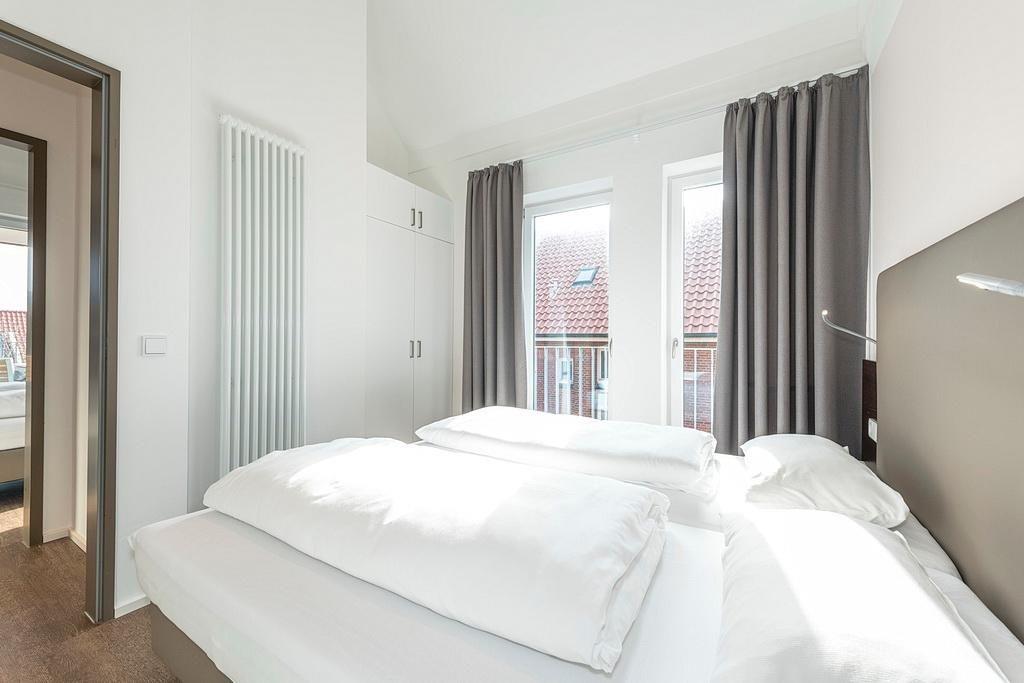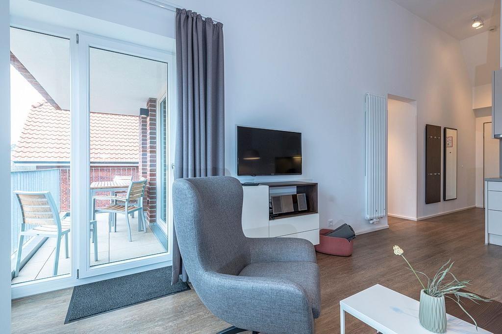 Das barrierearme Nichtraucher-Apartment verfügt über kostenfreies WLAN. Der Wohnbereich bietet eine voll ausgestattete offene Küchenzeile mit Geschirrspüler, Gefrierfach, Kaffeemaschine, Toaster, Wasserkocher und Mikrowelle mit Grillfunktion sowie einen großen Flatscreen-TV und Radio. Das Apartment verfügt über eine Schlafcouch, einen Esstisch und einen behaglichen Sitzbereich. In den beiden separaten Schlafzimmern befindet sich jeweils ein Doppelbett. Eines der Schlafzimmer verfügt zudem über einen zweiten Flatscreen-TV. Ein Kinderbett kann gegen Entgelt aufgestellt werden. Im stilvollen Badezimmer befinden sich eine große begehbare Dusche, eine Badewanne sowie ein Waschtisch mit Föhn und Kosmetikspiegel. Nach einem erlebnisreichen Urlaubstag lässt es sich auf dem geschützten Balkon wunderbar entspannen.