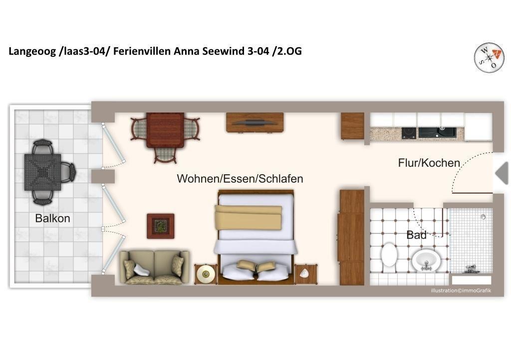 Das 30 m² große 1-Zimmer Apartment ist für bis zu 3 Personen geeignet. Besonders hervorzuheben ist der Balkon in sonnenreicher Süd-West-Lage. Hier könnt ihr sonnige und erholsame Urlaubstage und laue Sommerabende verleben.