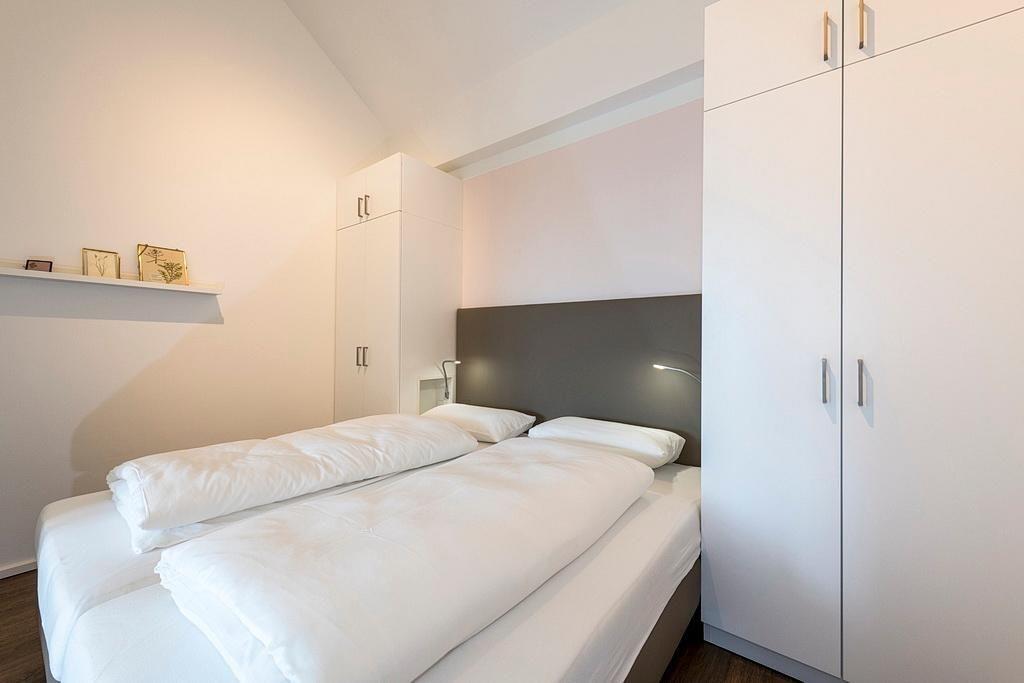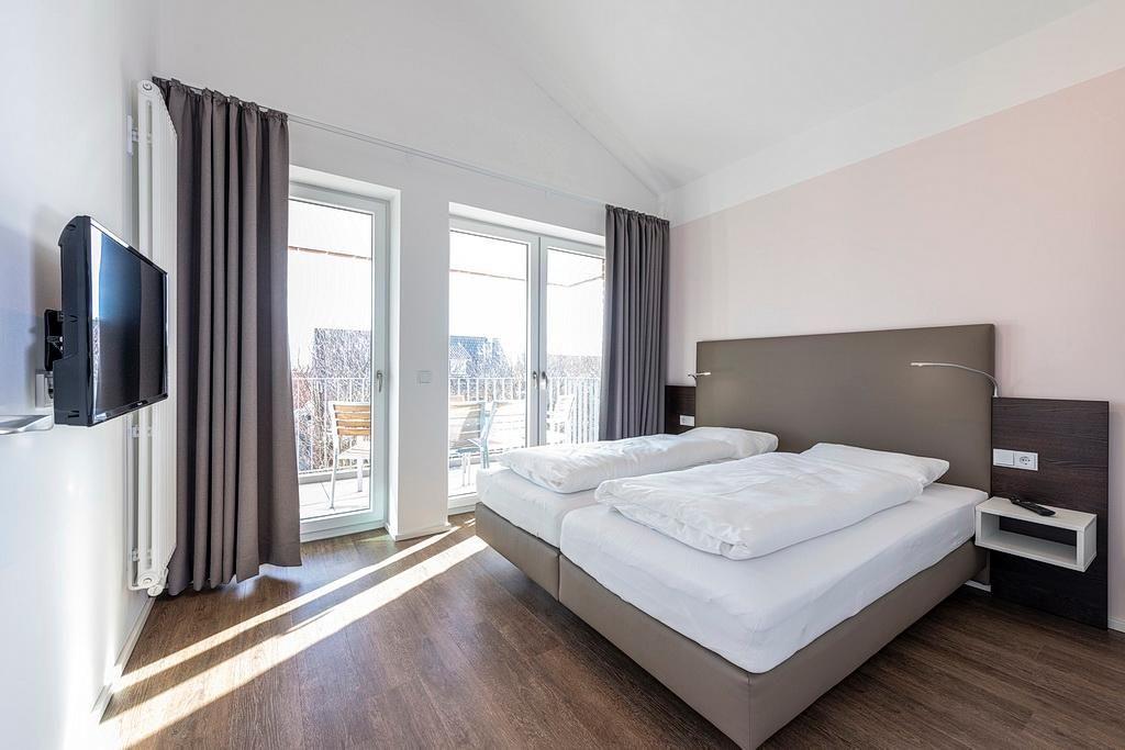 Das barrierearme Nichtraucher-Apartment verfügt über kostenfreies WLAN. Der Wohnbereich bietet eine voll ausgestattete offene Küchenzeile mit Geschirrspüler, Gefrierfach, Kaffeemaschine, Toaster, Wasserkocher und Mikrowelle mit Grillfunktion sowie einen großen Flatscreen-TV und Radio. Das Apartment verfügt über einen Esstisch und einen behaglichen Sitzbereich. Im separaten Schlafzimmer befindet sich ein Doppelbett und ein zweiter Flatscreen-TV. Das zweite Schlafzimmer, ohne Fenster, verfügt über ein Doppelbett und ist durch eine Schiebetür vom Wohn-Essbereich getrennt. Ein Kinderbett kann gegen Entgelt aufgestellt werden. Im stilvollen Badezimmer befinden sich eine große begehbare Dusche, eine Badewanne sowie ein Waschtisch mit Föhn und Kosmetikspiegel. Nach einem erholsamen Urlaubstag lässt sich auf dem sonnigen und geschützten Balkon in Süd-Lage herrlich entspannen.