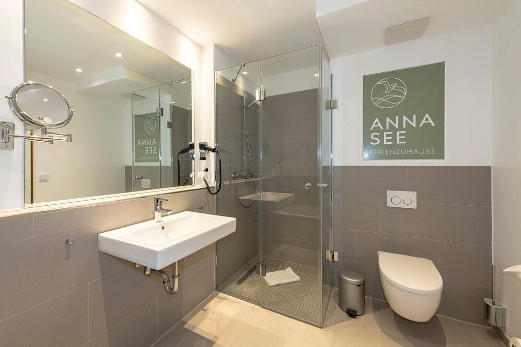 Das barrierearme Nichtraucher-Apartment verfügt über kostenfreies WLAN. Der Wohnbereich, mit einer Schlafcouch, bietet eine voll ausgestattete offene Küchenzeile mit Geschirrspüler, Gefrierfach, Kaffeemaschine, Toaster, Wasserkocher und Mikrowelle mit Grillfunktion sowie einen großen Flatscreen-TV und Radio. Das Apartment verfügt über einen Esstisch und einen behaglichen Sitzbereich. Im separaten Schlafzimmer befindet sich ein Doppelbett und ein zweiter Flatscreen-TV, in einem weiteren Schlafbereich mit Schiebetür stehen euch zwei Einzelbetten zur Verfügung. Ein Kinderbett kann gegen Entgelt aufgestellt werden. Im stilvollen Badezimmer befinden sich eine große begehbare Dusche, eine Badewanne sowie ein Waschtisch mit Föhn und Kosmetikspiegel. Nach einem erholsamen Urlaubstag lässt es sich auf dem sonnigen und geschützten Balkon herrlich entspannen.