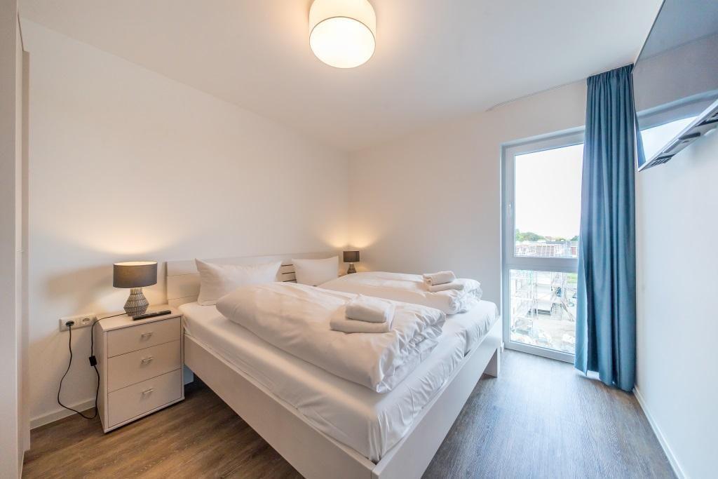 Das Apartment verfügt über zwei separate Schlafzimmer in denen euch ein Doppelbett (1,80 m x 2,00 m) bzw. ein Etagenbett (0,90 m x 2,00 m) zur Verfügung steht. Das Etagenbett beinhaltet ein ausziehbares drittes Bett, das ideal für ein weiteres Kind geeignet ist. Das Schlafzimmer mit Doppelbett verfügt über einen eigenen Flatscreen-TV. Ein Kinderbett und einen Hochstuhl könnt ihr auf Wunsch entgeltlich dazu buchen.