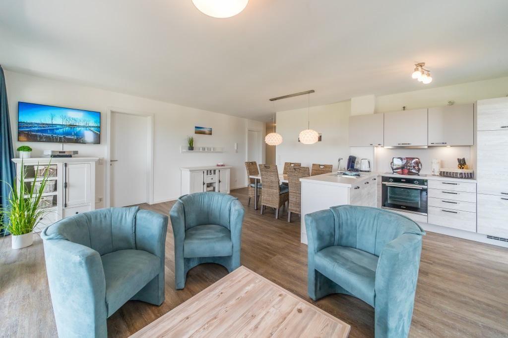 Das 79 m² große 3-Zimmer-Apartment ist für 5 Personen geeignet. Besonders hervorzuheben ist hier die einmalige Lage direkt am Deich und der Meerblick vom großzügigen Balkon des Apartments - weit über den Deich bis zum Strand und zur Nordsee. Besonders reizvoll: Das stilvolle Apartment verfügt über eine eigene Sauna im Badezimmer des exklusiven Apartments.