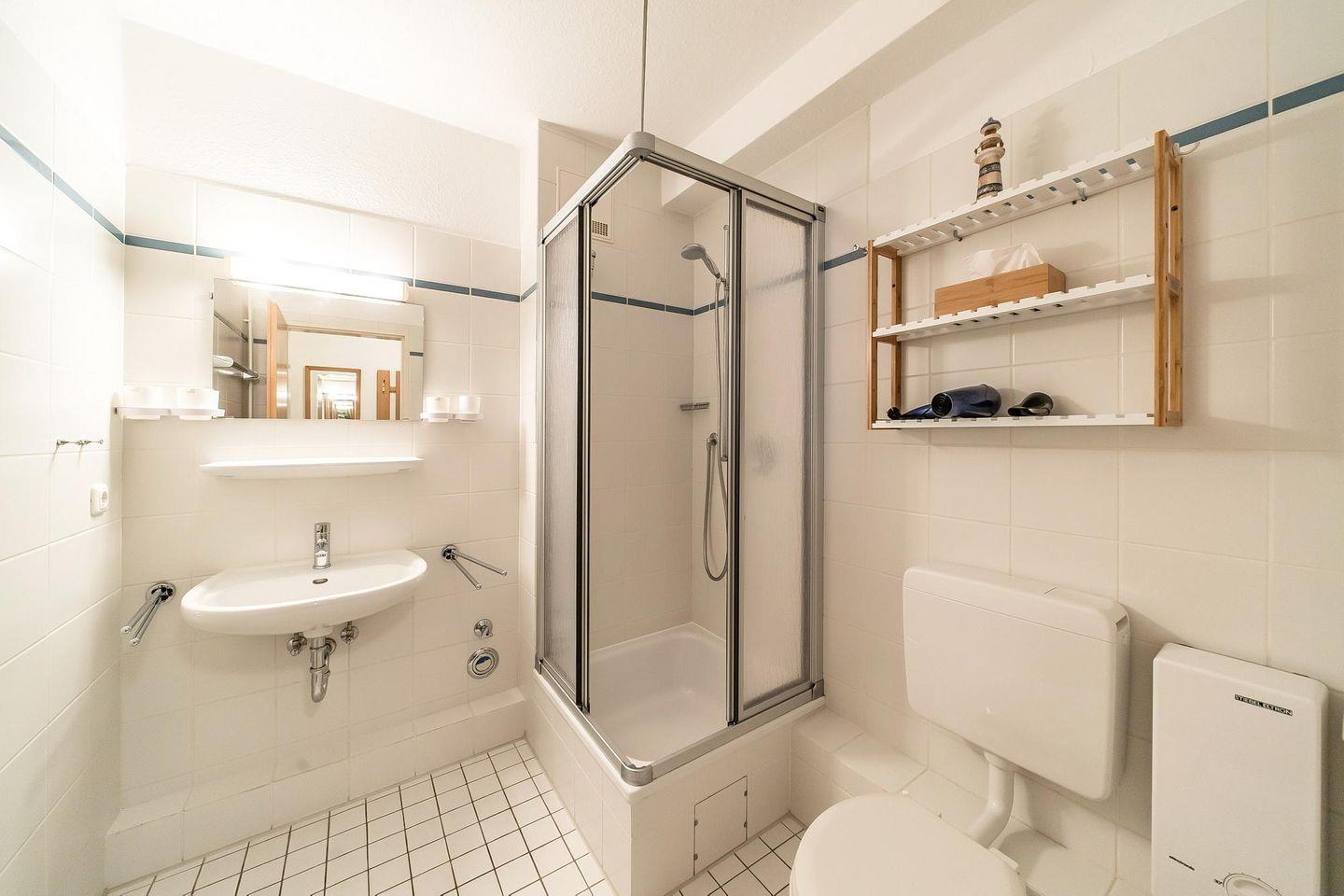 Die Nichtraucherwohnung verfügt über kostenfreies WLAN und eine voll ausgestattete, offene Küche. Diese bietet u. a. Mikrowelle, Gefrierfach, Kaffeemaschine, Toaster, Wasserkocher, Geschirrspüler, Umluftbackofen und Ceranfeld. Im Badezimmer befinden sich Dusche, WC und Föhn. Das Schlafzimmer verfügt über zwei Einzelbetten, im Wohnbereich stehen euch ein Flatscreen-TV und eine Doppelschlafcouch zur Verfügung. Nach einem erholsamen Urlaubstag könnt ihr auf dem Balkon entspannen und das Meeresklima genießen. Der Balkon ist vom Wohnbereich aus zugänglich.