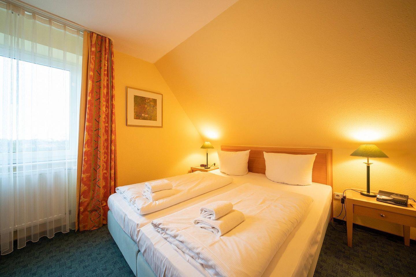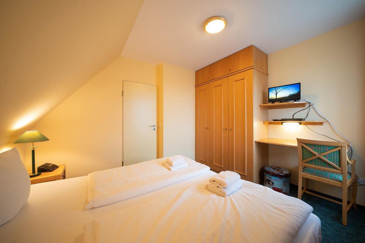 Die 55 m² große 3-Zimmer-Ferienwohnung ist für bis zu 4 Personen geeignet. Besonders hervorzuheben ist der seitliche Meerblick vom Balkon des Apartments.