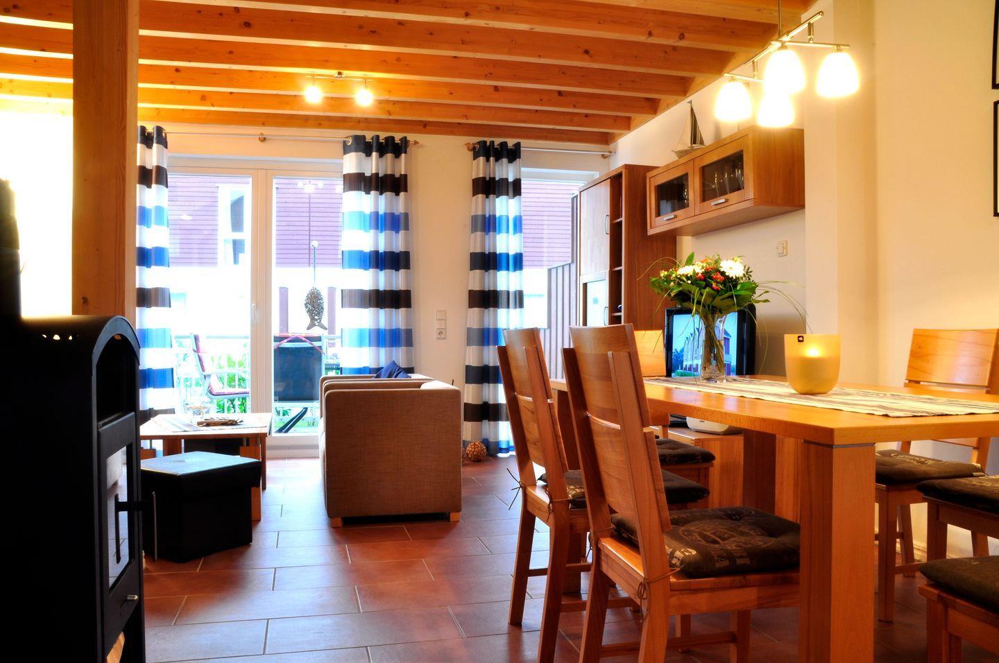 Tolles Ferienhaus am Deich mit Terrasse, Balkon mit Meerblick, Sauna & Kaminofen