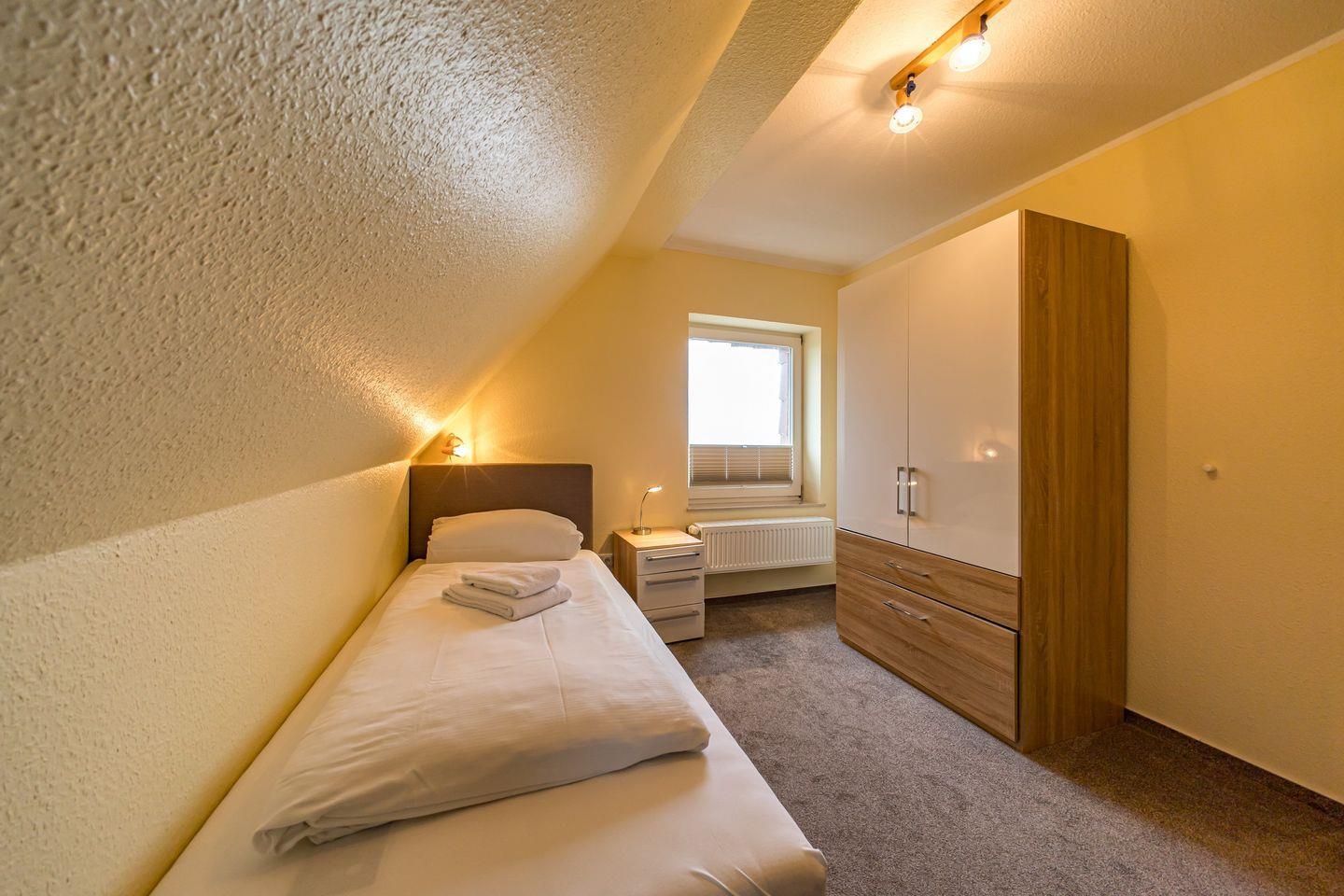 Das Apartment verfügt über kostenfreies WLAN. Die Aufteilung der drei Ebenen des Feriendomizils ergibt sich folgendermaßen: Schlafzimmer mit Doppelbett, Bad mit Dusche und Abstellraum liegen im 1. Geschoss, Wohnschlafbereich mit Doppelschlafcouch, offene Küche und Balkon mit herrlichem Nordsee-Blick auf der 2. Etage und zur 3. Ebene gehören ein 2. Schlafzimmer mit 2 Einzelbetten und ein 2. Bad mit Dusche.