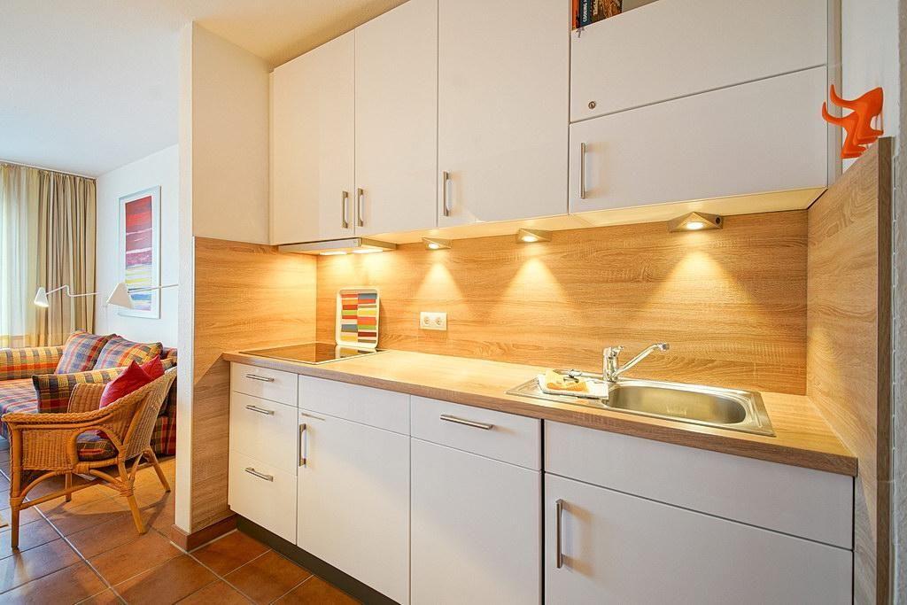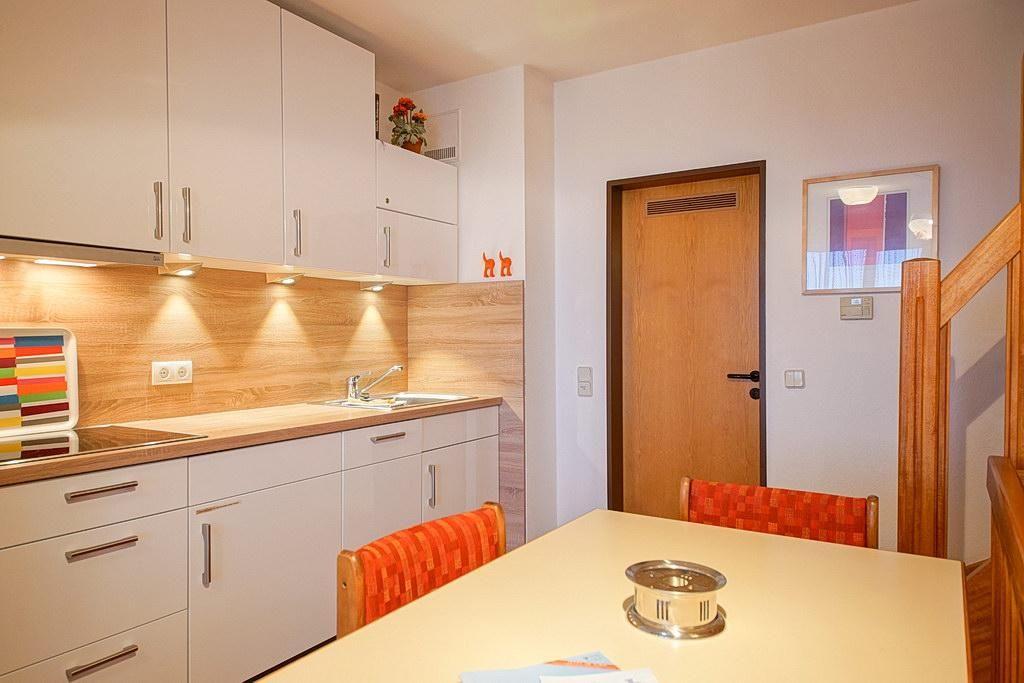 Die Küchenausstattung beinhaltet Kaffeemaschine, Toaster, Wasserkocher, Minibackofen mit Grillfunktion, Mikrowelle, Geschirrspüler und Eierkocher. Bügeleisen und Bügelbrett sind vorhanden. Ein Kinderbett und einen Hochstuhl könnt ihr auf Wunsch entgeltlich dazu buchen.