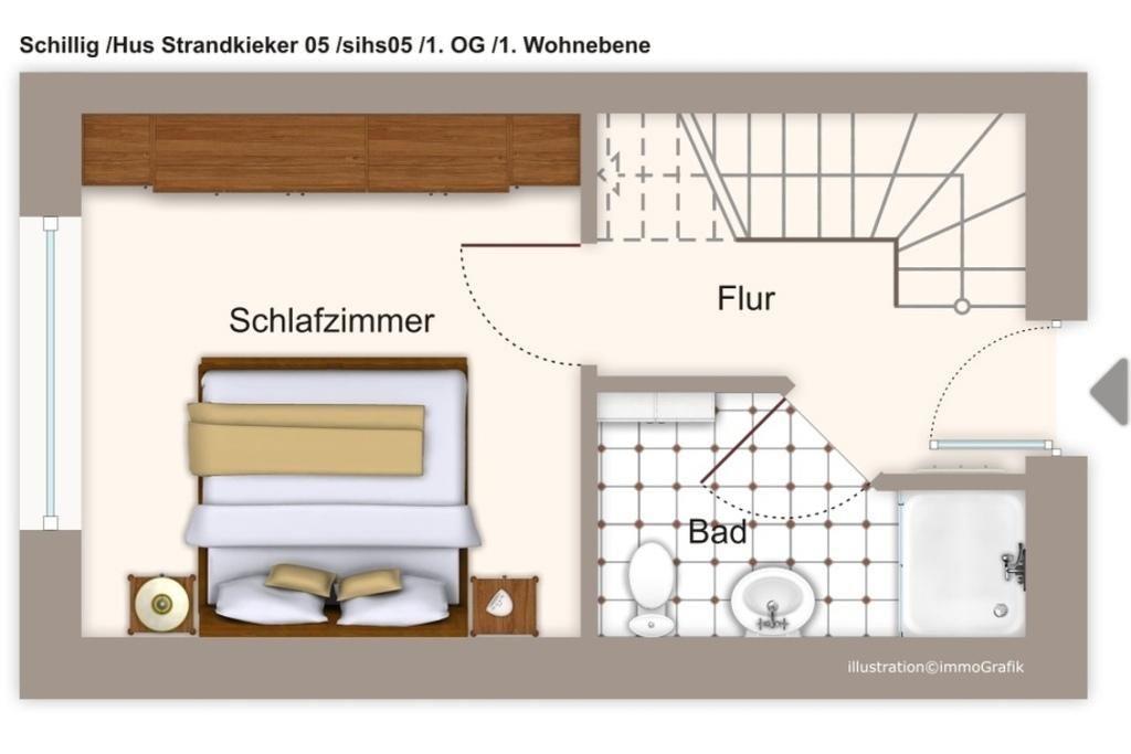 Individuelle Maisonette-Apartments an der Nordsee bietet das „Hus Strandkieker“ in Schillig. Das gemütliche 54 qm große 2-Zimmer-Apartment verläuft über zwei Ebenen und ist optimal geeignet für zwei Personen. Vom Balkon aus habt ihr einen schönen Blick auf die Nordsee und den Deich.