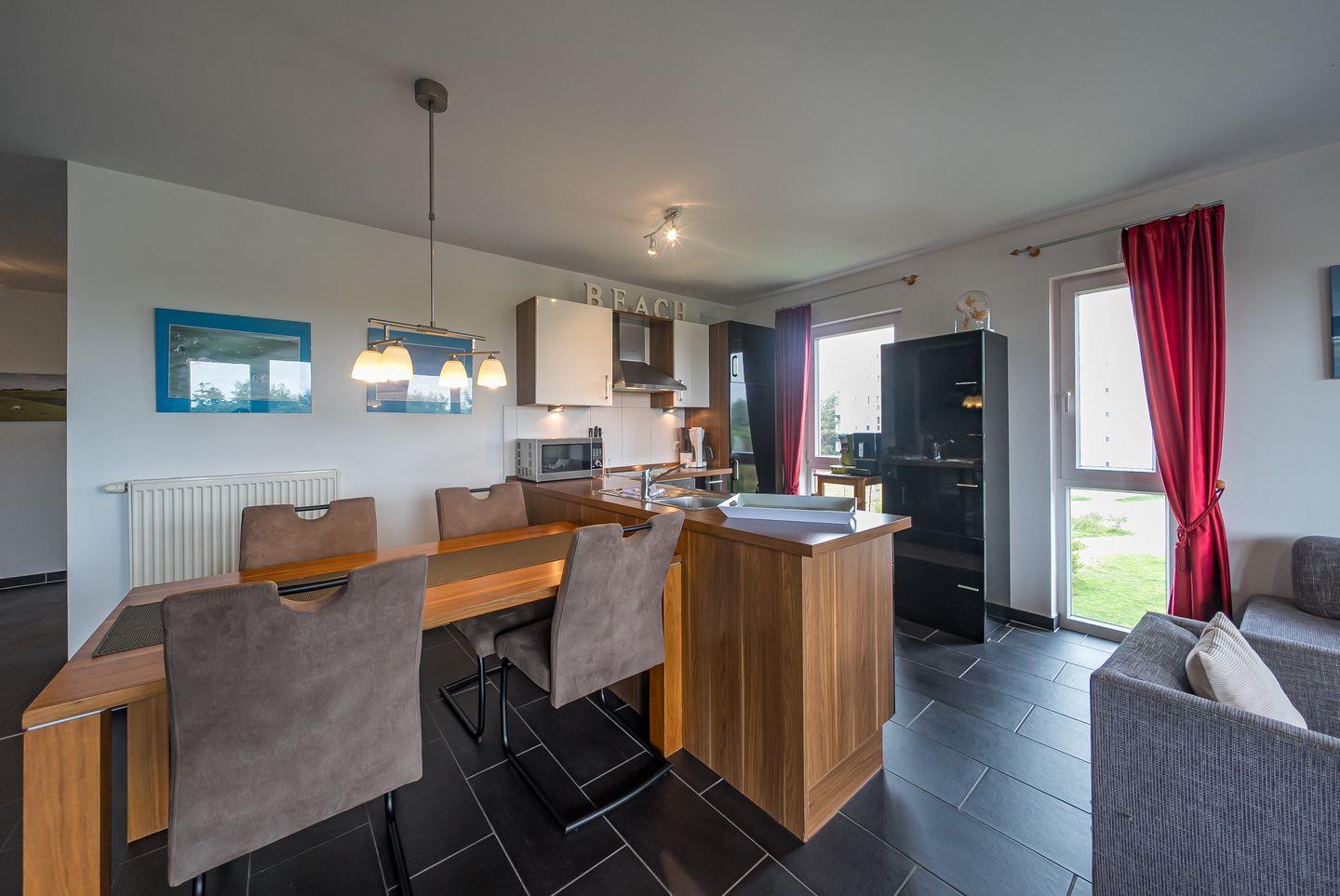 Die komfortable79 qm große 3-Zimmer-Ferienwohnung begeistert durch Meerblick, Sauna und Whirlbadewanne sowie ihren großzügigen Balkon. Bis zu 4 Personen können hier einen wunderbaren Nordsee-Urlaub verleben.