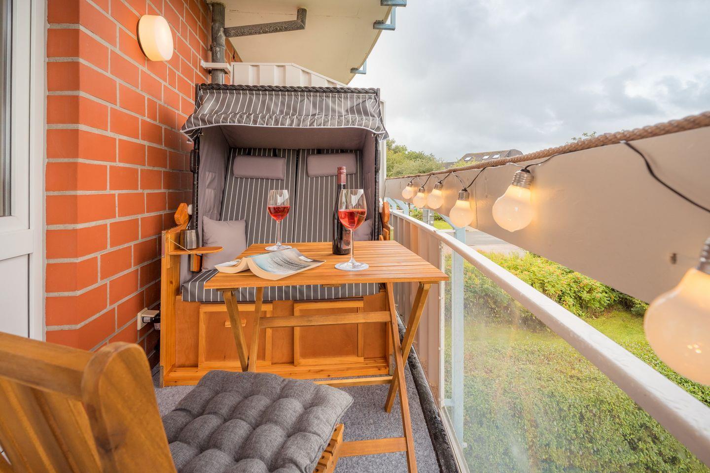Nordsee-Ferienwohnung am Deich mit Balkon und Strandkorb inkl. PKW-Stellplatz