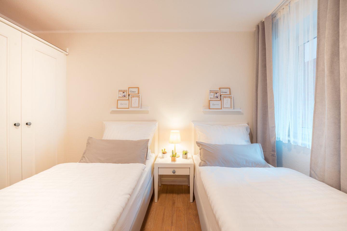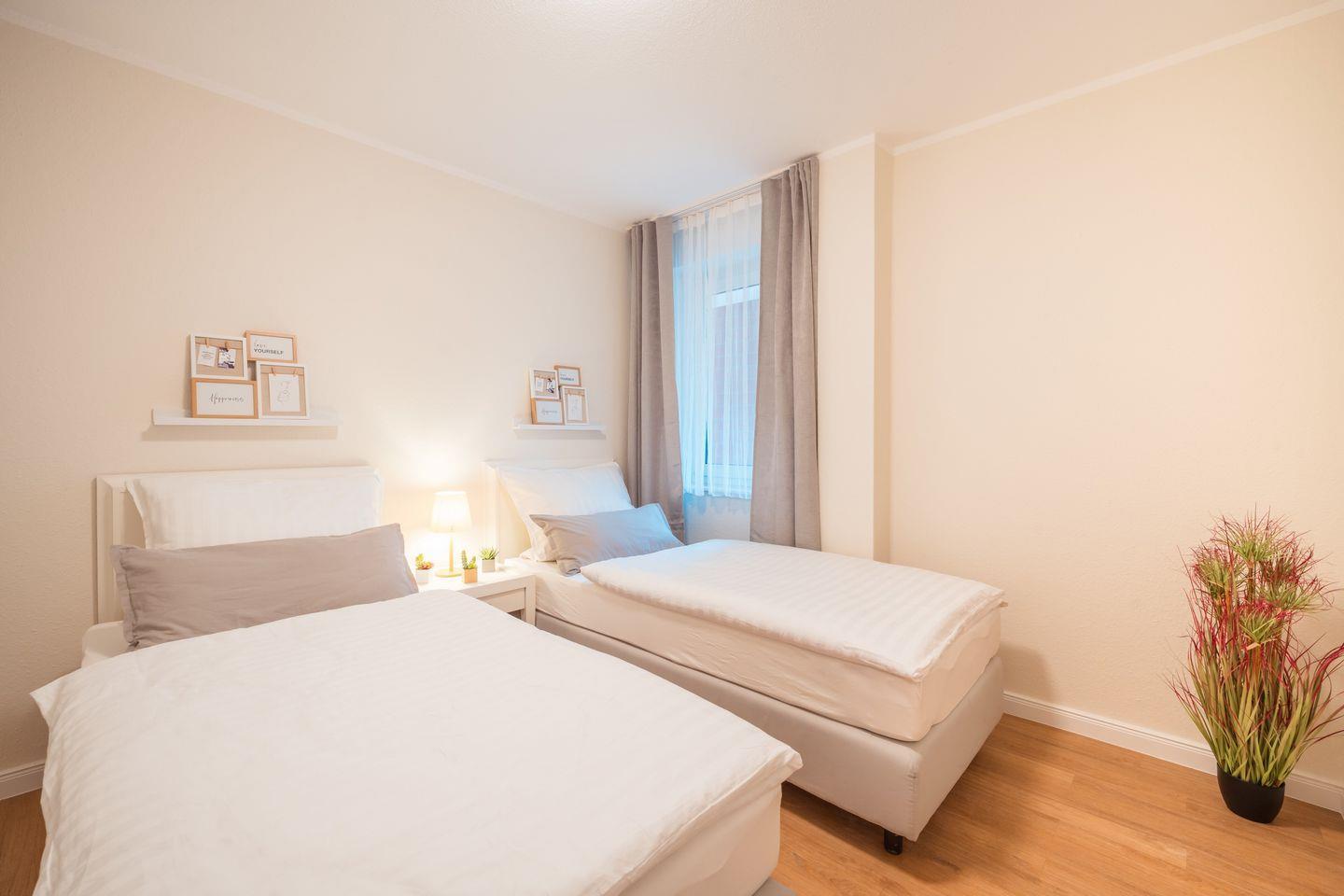 Das Apartment bietet euch zwei separate Schlafzimmer: Ein Schlafzimmer mit einem Doppelbett (1,80 x 2,00 m) und SMART-TV (43 Zoll) sowie einem Schlafzimmer mit zwei Einzelbetten (0,90 x 2,00 m) und SMART-TV (32 Zoll). Überdies verfügt die stilvolle Wohnung über einen Wohnbereich mit großem SMART-TV (55 Zoll) und über einen überdachten Balkon in Nord-West-Lage mit Strandkorb, Sonnenschirm, Gartenmöbeln und Blick auf den Nordseedeich. Das moderne Duschbad beinhaltet Waschtisch, Handtuchheizkörper, Kosmetikspiegel und Föhn.