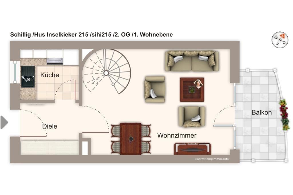 Familienfreundliche Maisonettewohnung an der See mit Balkon und Blick zum Deich