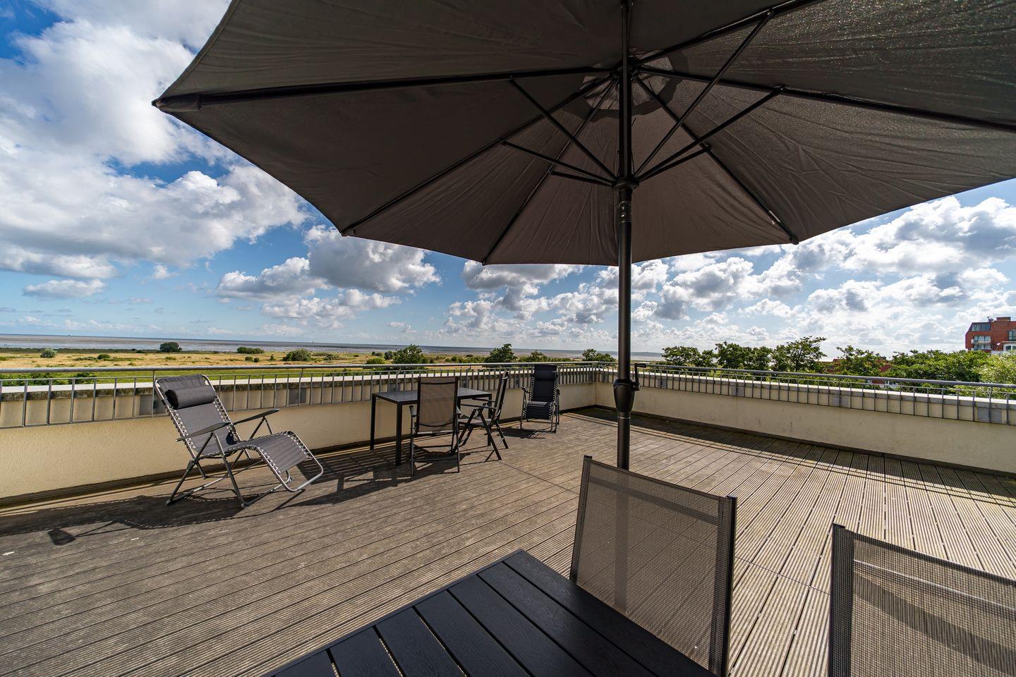 Tolles Nordsee-Apartment mit 54 qm Dachterrasse, Meerblick, Sauna und Kaminofen!