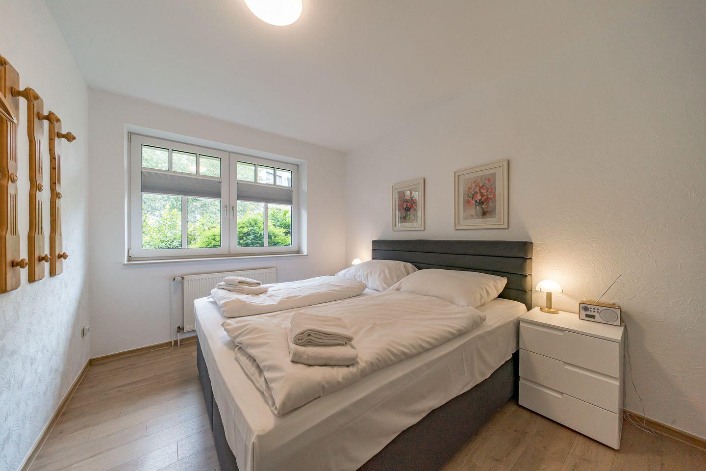 Euer Feriendomizil umfasst zwei Schlafzimmer mit jeweils einem Doppelbett, einen Wohn-Essbereich mit offener Küche und eine überdachten Balkonterrasse. Ebenso findet ihr ein Badezimmer mit Dusche und Föhn vor. Die voll ausgestattete offene Küche verfügt über Backofen, Mikrowelle, Wasserkocher, Kaffeemaschine, Toaster und Kühlschrank mit Tiefkühlfach. Das Apartment beinhaltet eine TV-HiFi-Anlage mit Blu-Ray/DVD-Player und kostenfreiem WLAN. Eines der Schlafzimmer verfügt über einen eigenen Flatscreen-TV. Auf Wunsch sind ein Kinderbett und Kinderhochstuhl buchbar.