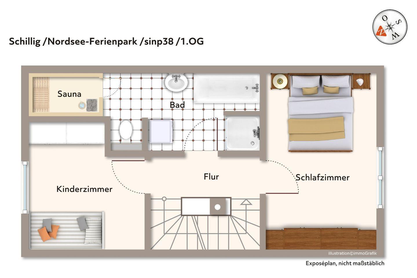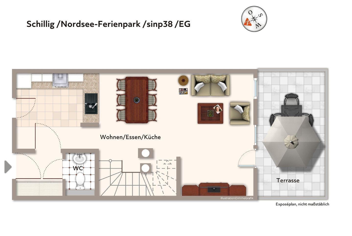 Das 107 qm große und komfortable 5-Zimmer-Ferienhaus ist für 6 Personen geeignet. Besonders hervorzuheben sind die wunderschöne Terrasse in Südlage direkt am Wasserlauf sowie der überdachte Balkon in nördlicher Lage zum Meer und zum Deich gelegen. Das geschmackvolle Apartment verfügt überdies über eine eigene Sauna und einen Kamin.