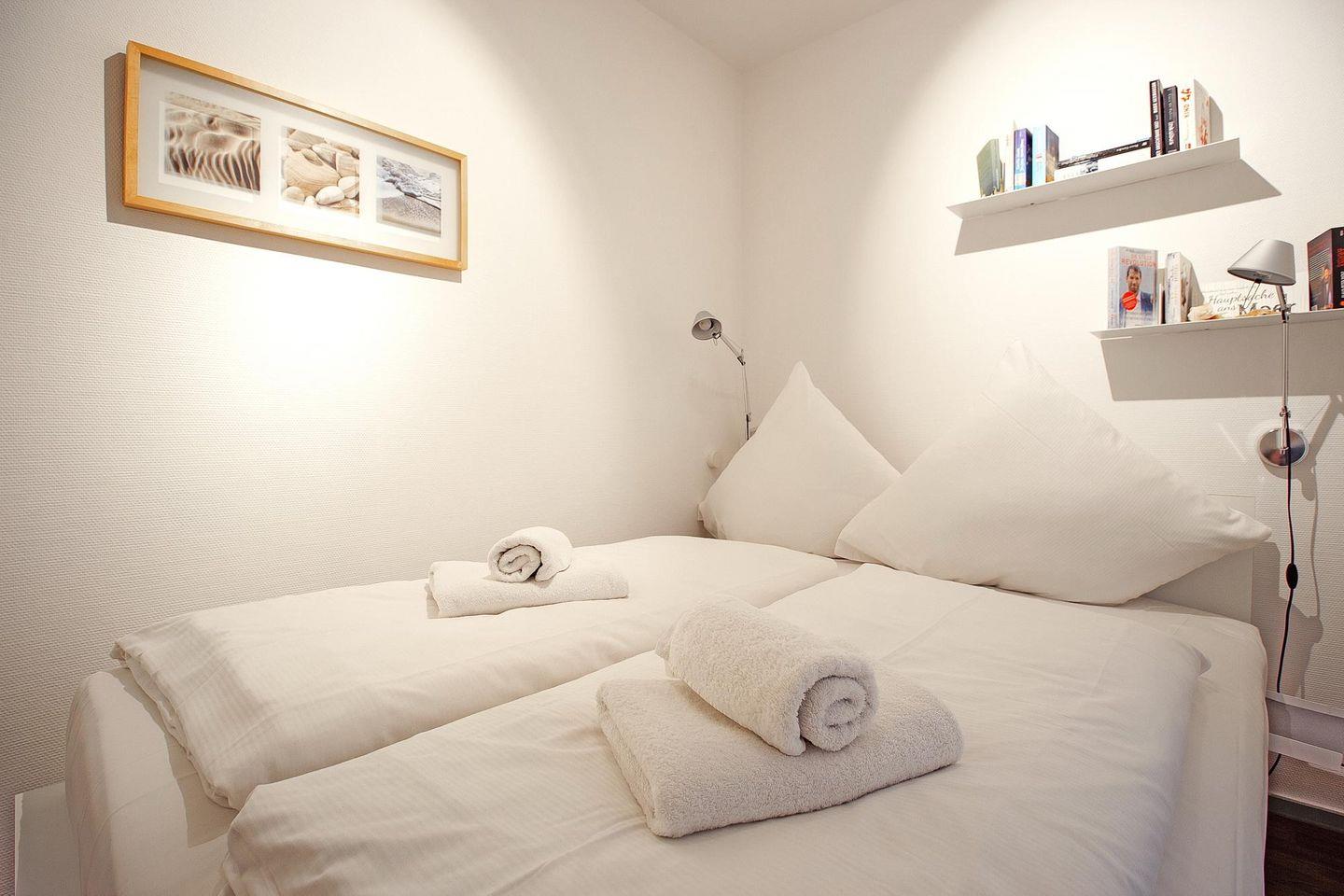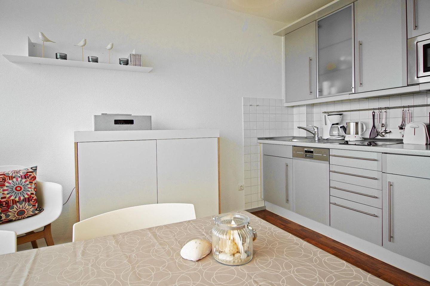 Das helle Nichtraucherapartment verfügt über eine voll ausgestattete offene Küche mit Geschirrspüler, Kaffeemaschine, Toaster, Wasserkocher, Backofen, Tiefkühlfach und Mikrowelle. In den zwei Schlafzimmern stehen euch ein Doppelbett (1,40 m x 2,00 m) und ein Etagenbett (0,90 m x 1,80 m) zur Verfügung. Im Wohnbereich befinden sich ein Flatscreen-TV und eine HiFi-Anlage. Neben dem Badezimmer mit Dusche, Föhn und Kosmetikspiegel, verfügt die Wohnung über ein separates WC. In dieser Wohnung steht euch ein Kinderhochstuhl kostenfrei zur Verfügung.