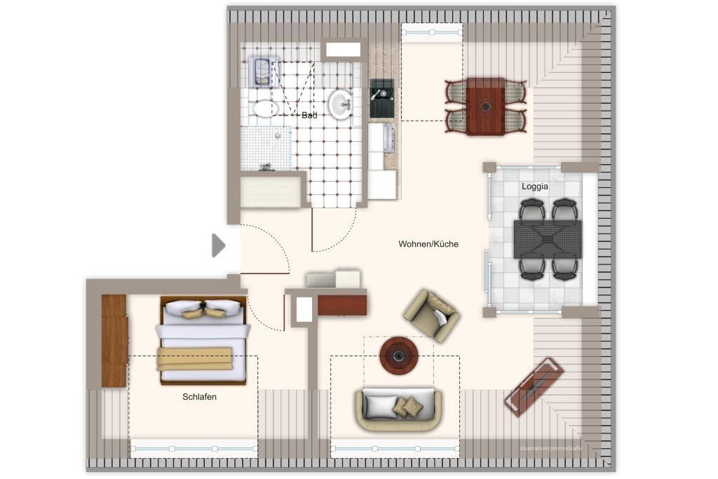Tolle Dachgeschosswohnung mit geschützter Loggia nach Osten - 100 m zum Strand!