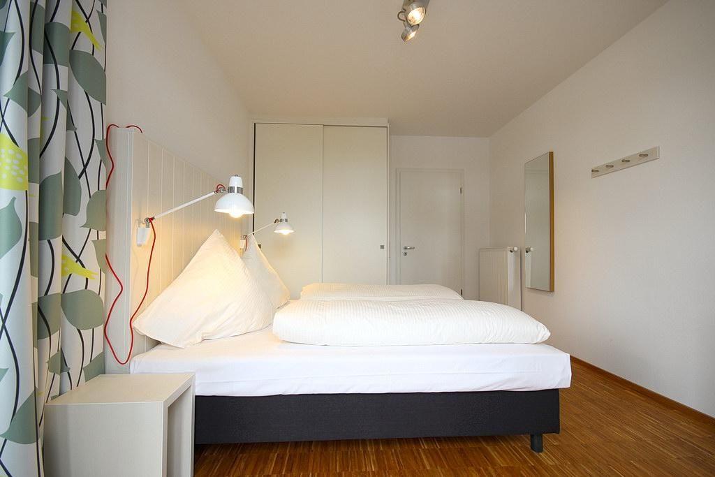 Das barrierearme Apartment verfügt über kostenfreies WLAN und eine voll ausgestattete offene Küche mit integriertem Tresen samt Barhocker sowie Geschirrspüler, Gefrierfach, Kaffeemaschine, Toaster, Wasserkocher, Mikrowelle und Backofen. Beide Schlafzimmer sind mit einem Doppelbett ausgestattet, im Wohnbereich befinden sich eine Doppelschlafcouch und ein Flatscreen-TV. Ein Kinderbett kann gegen Entgelt aufgestellt werden. Im modernen Badezimmer stehen euch eine große begehbare Dusche sowie ein Waschtisch mit Föhn und Kosmetikspiegel zur Verfügung. Auf der geschützten und sonnenreichen Loggia lässt es sich den ganzen Tag wunderbar entspannen.