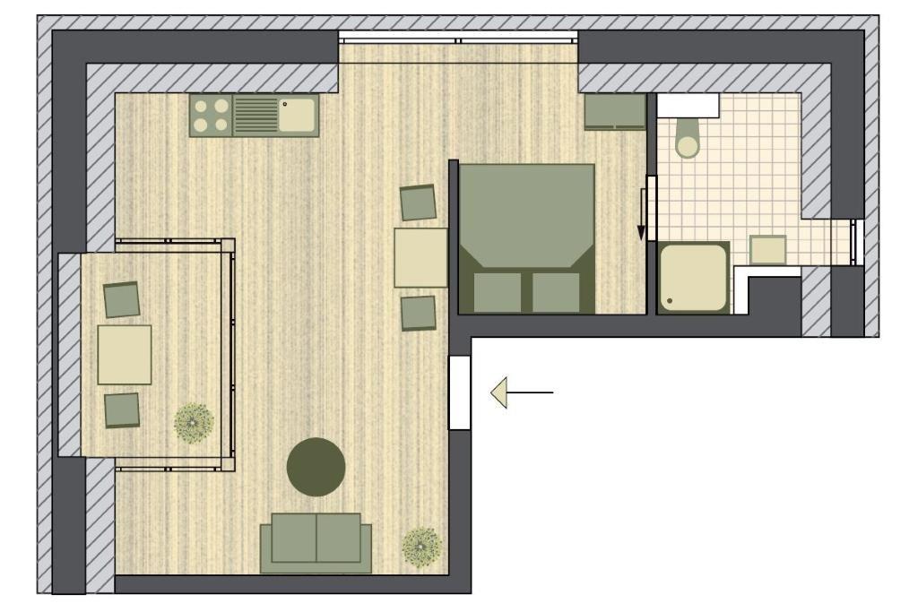 Das 38 m² große 1-Zimmer Apartment ist für 2 Erwachsene geeignet. Besonders hervorzuheben ist der sonnige Balkon in Süd-Lage und die exponierte Lage im Dachgeschoss.