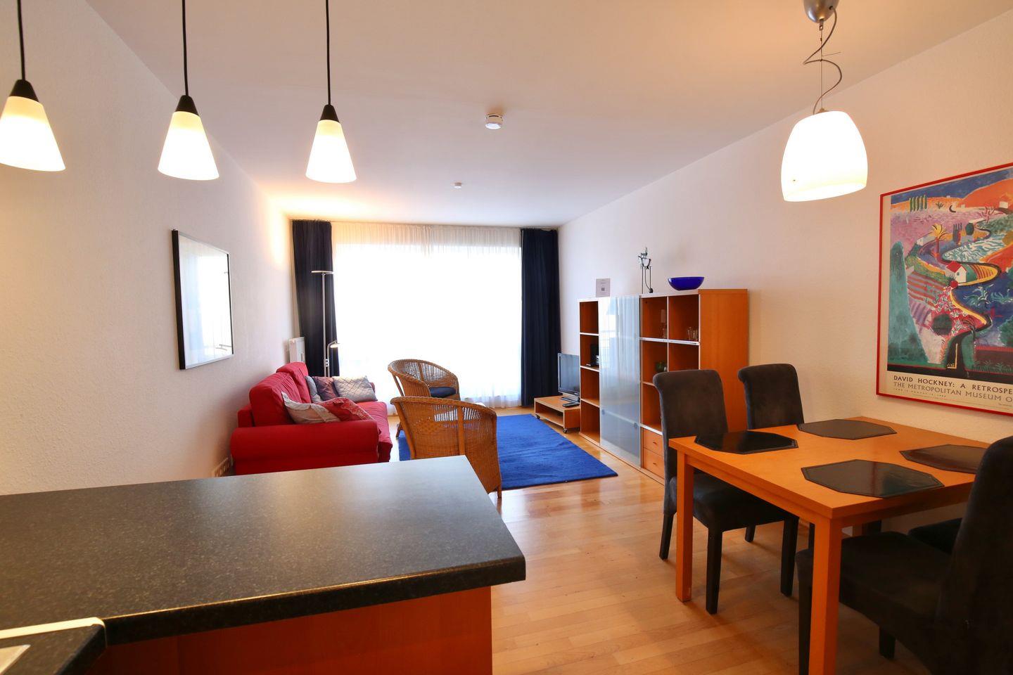 Die 46 m² große 2-Zimmer Ferienwohnung ist für bis zu 3 Personen geeignet. Besonders hervorzuheben ist der Balkon mit Meerblick und eigenem Strandkorb. Meeresrauschen immer inklusive!