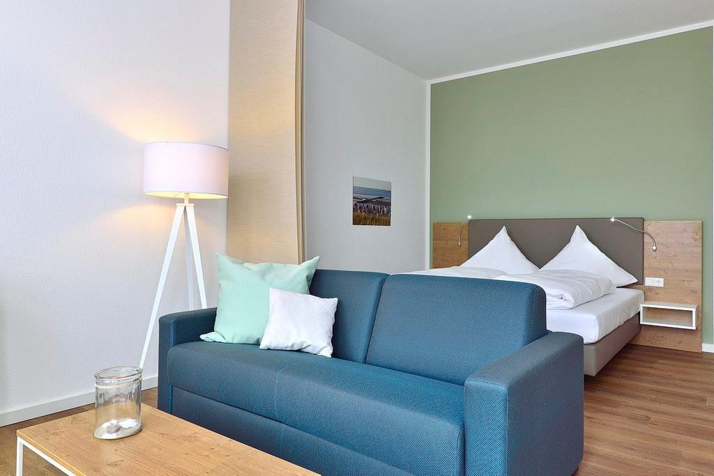 Der großzügige Saunabereich mit finnischer Sauna, Softsauna, Fußbecken, Ruheraum und Lesebereich des Aparthotels sind für euch inklusive. Bademäntel und Saunatücher sind auf Wunsch und gegen Entgelt an der Rezeption erhältlich.