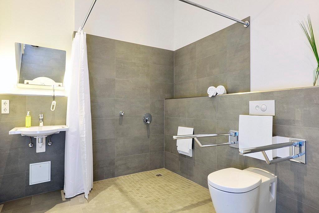 Das Apartment ist mit einer kleinen, aber feinen Pantryküche ausgestattet. Diese verfügt u. a. über ein Gefrierfach, eine Kaffeemaschine, einen Toaster und einen Wasserkocher. Das stilvolle und behindertenfreundliche Bad ist mit einer großzügigen Dusche und Sitzgelegenheit ausgestattet. Der Spiegel über dem Waschtisch ist verstellbar und neben dem WC befinden sich Griffe. Zudem sind Badeingang und alle weiteren Türen im Apartment 95 cm breit. Im Badezimmer befinden sich zudem ein Föhn und Kosmetikspiegel. Das moderne Wohn- und Schlafzimmer bietet euch einen großen Flatscreen-TV, eine HiFi-Anlage und eine Einzelschlafcouch. Ein Kinderbett kann gegen Entgelt im Wohnbereich aufgestellt werden. Nach einem erholsamen Urlaubstag könnt ihr auf der westseitigen Terrasse entspannen. Das Apartment verfügt neben den Gartenmöbeln für 4 Personen über einen eigenen Strandkorb auf der Terrasse.