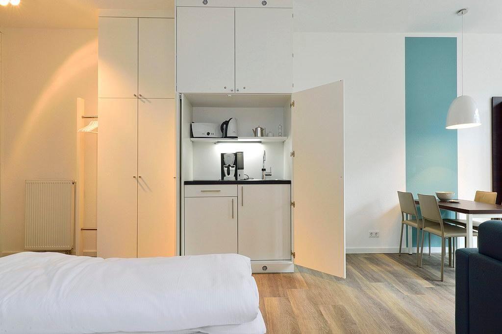 Das Apartment ist mit einer kleinen, aber feinen Pantryküche ausgestattet. Diese verfügt u. a. über ein Gefrierfach, eine Kaffeemaschine, einen Toaster und einen Wasserkocher. Im stilvollen Badezimmer befinden sich eine begehbare Dusche sowie ein Waschtisch mit Föhn und Kosmetikspiegel. Das moderne Wohn- und Schlafzimmer bietet euch einen großen Flatscreen-TV, eine HiFi-Anlage und eine Einzelschlafcouch. Ein Kinderbett kann gegen Entgelt im Wohnbereich aufgestellt werden. Auf der Terrasse genießt ihr euer Frühstück bereits im Sonnenschein.
