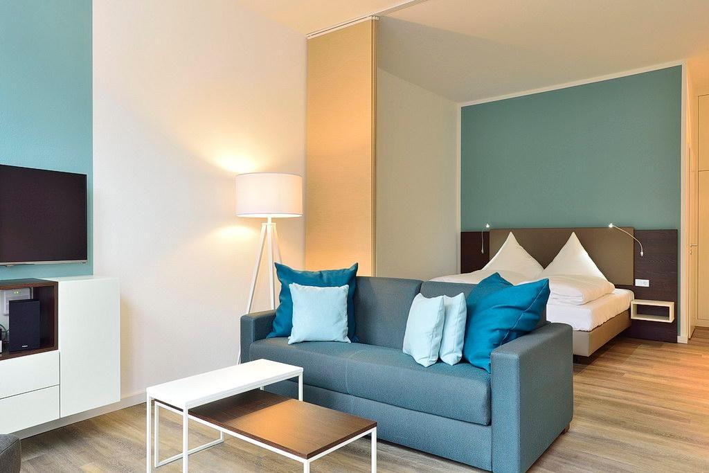 Der großzügige Saunabereich mit finnischer Sauna, Softsauna, Fußbecken, Ruheraum und Lesebereich des Aparthotels sind für euch inklusive. Bademäntel und Saunatücher sind auf Wunsch und gegen Entgelt an der Rezeption erhältlich.