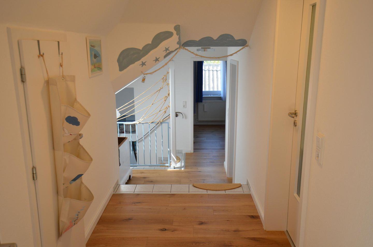 Das geschmackvoll eingerichtete Domizil verfügt über 1 Wohn-/Schlafzimmer, 1 Küche mit Essbereich, 3 Schlafräume, 1 Vollbad, 1 Duschbad, 1 Fasssauna sowie einen ca. 800 m² großen, eingezäunten Garten mit fantastischem Blick auf die angrenzenden Felder.